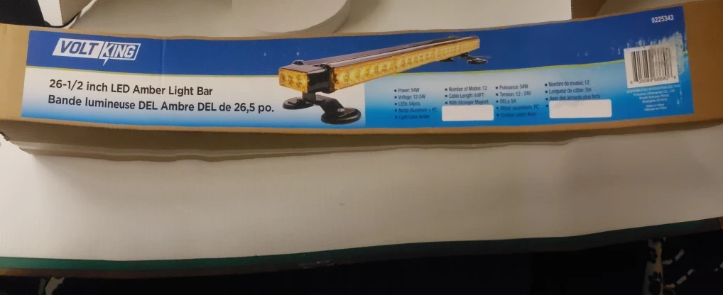 Amber LED light bar. Magnetic mount. 54W. 12-24V. 9ft cable. 54 LEDs. Includes stronger magnets.