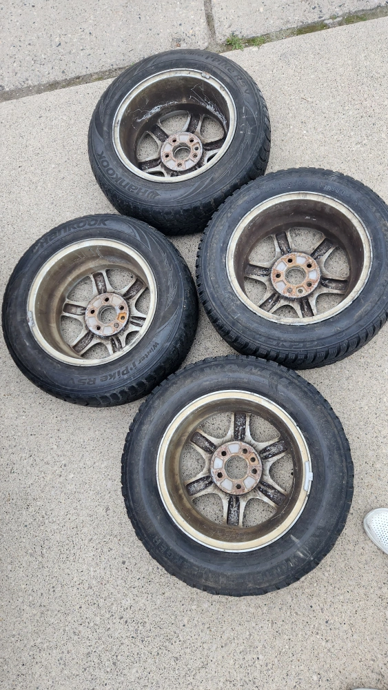 Selling a set of four Volvo rims, each measuring 6.5Jx15x43 (5×108 bolt patter). They come with tiresThe rims show some signs of wear, as seen in the pictures.