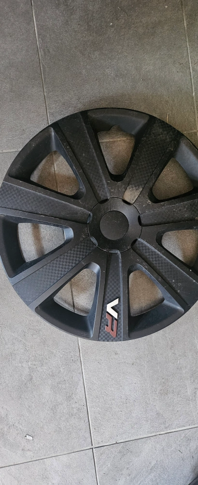 Here's a black wheel cover with the VR logo. It's in good condition and ready to use! 16". Great for winter rim cover and keep in style or for summer etc. all is negotiable set of 4