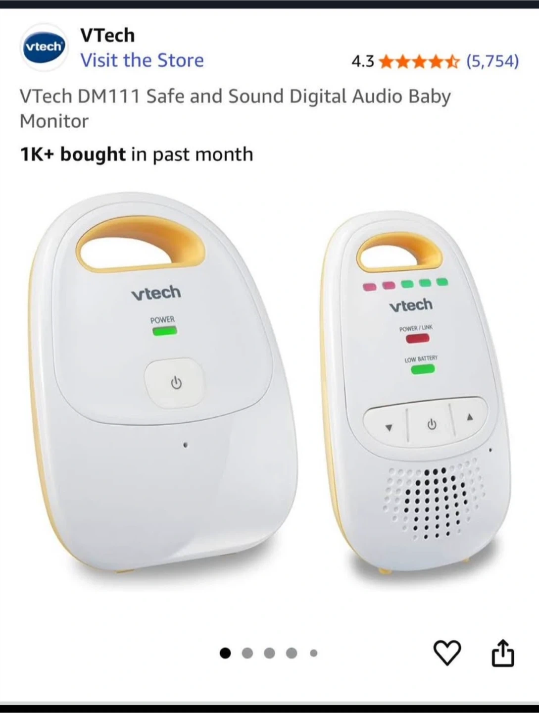 Selling a VTech Baby Monitor. It's a great audio monitor to keep an ear on your little one! Used couple times works perfectly fine.