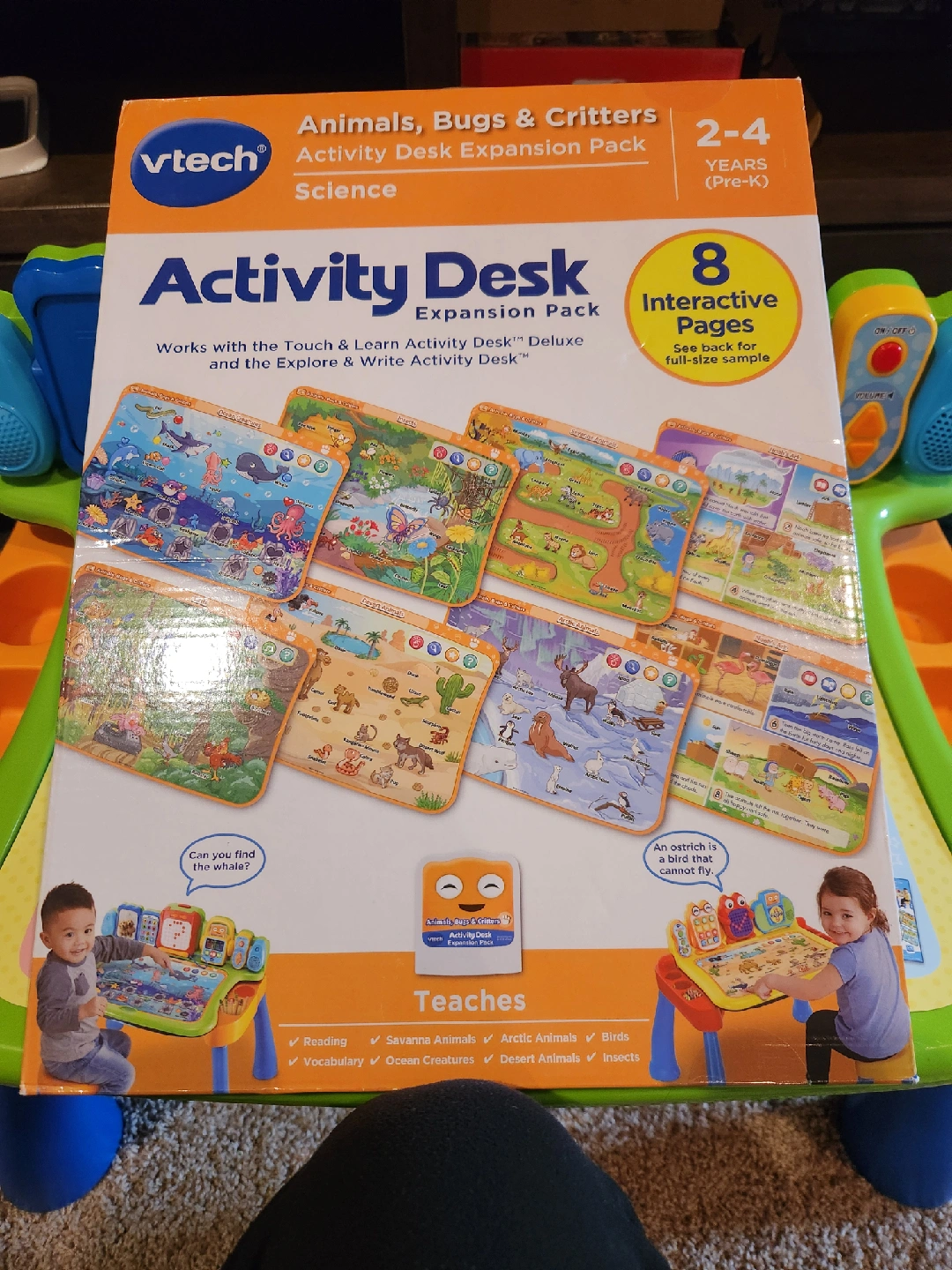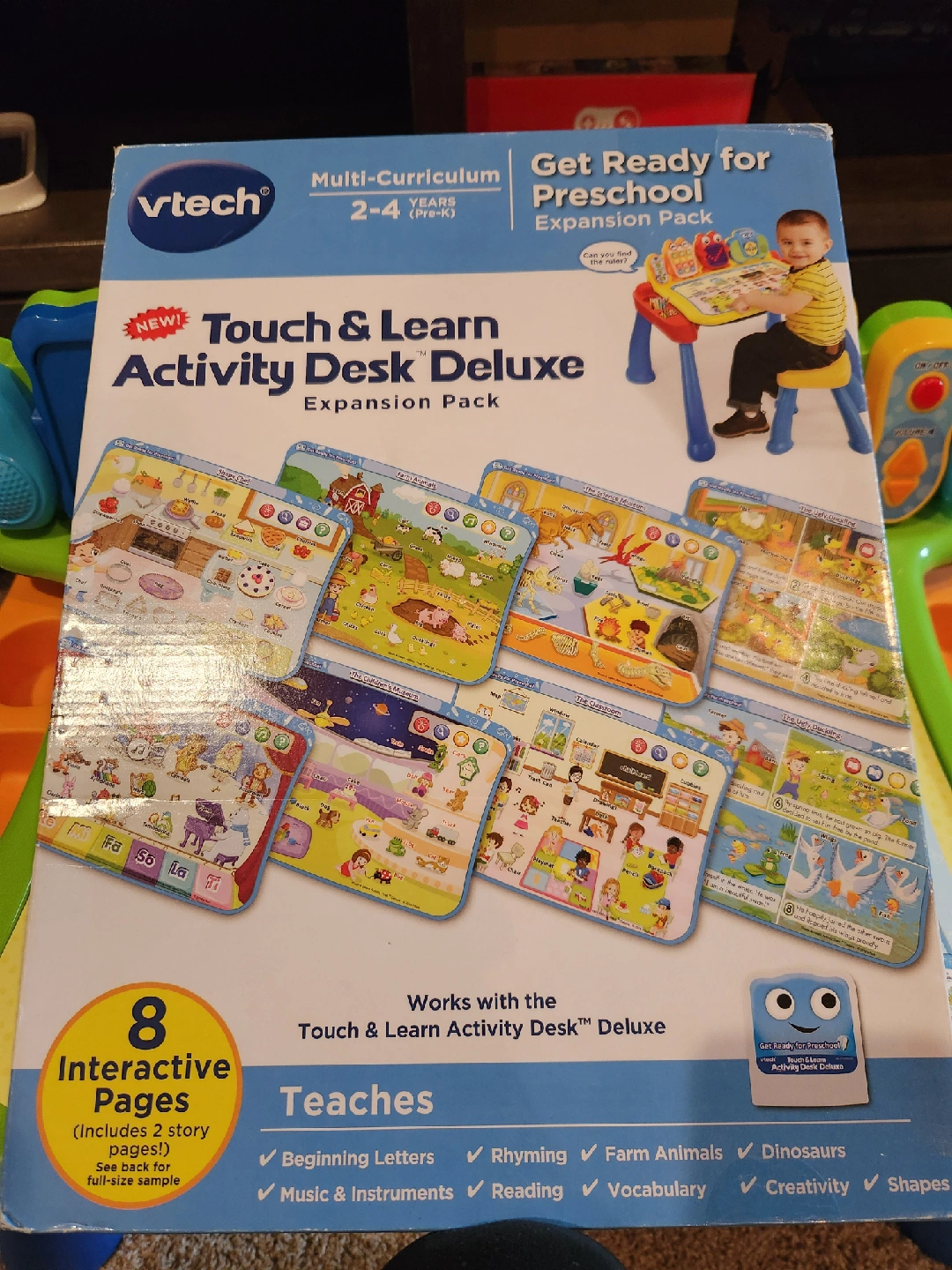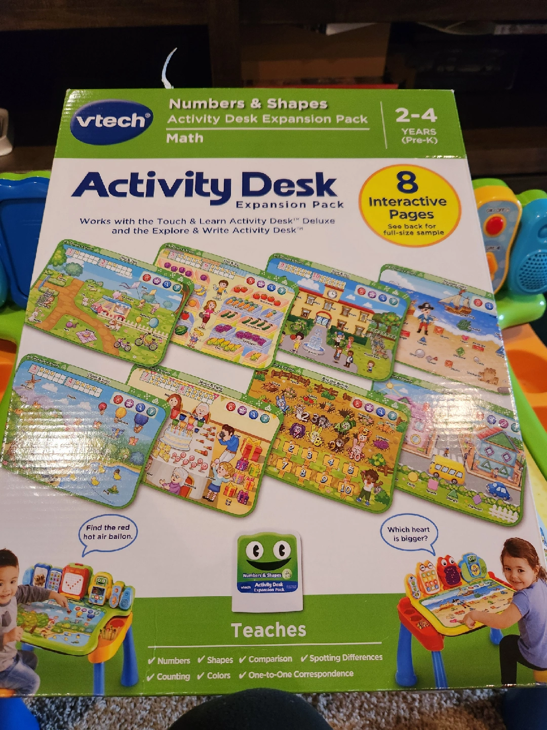 I'm selling VTech Activity Desk & all preschool Expansion Packs for the VTech Touch & Learn Activity Desk Deluxe and the Explore & Write Activity Desk. One pack is for Numbers & Shapes (Math), and the other is for Nursery Rhymes (Language Arts). They are designed for kids aged 2-4 years (Pre-K). Each pack includes 8 interactive pages to help your child learn!