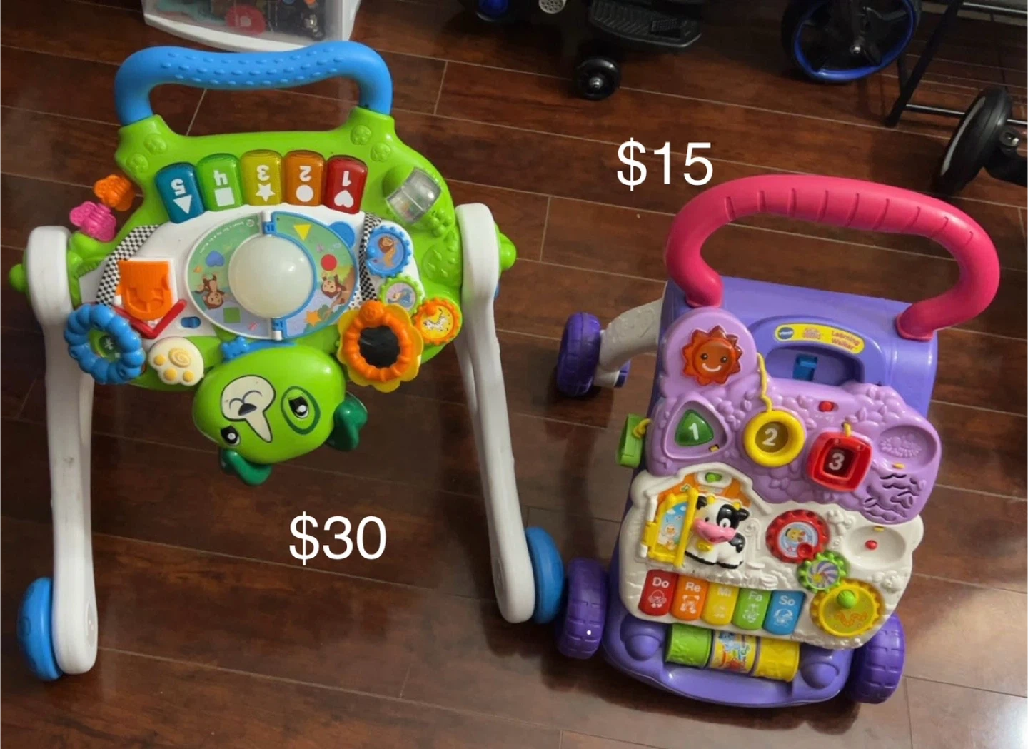 Selling two VTech learning walkers! One is green and the other is purple. Both are in great shape and ready for a new home. Perfect for helping your little one take their first steps while learning numbers and sounds