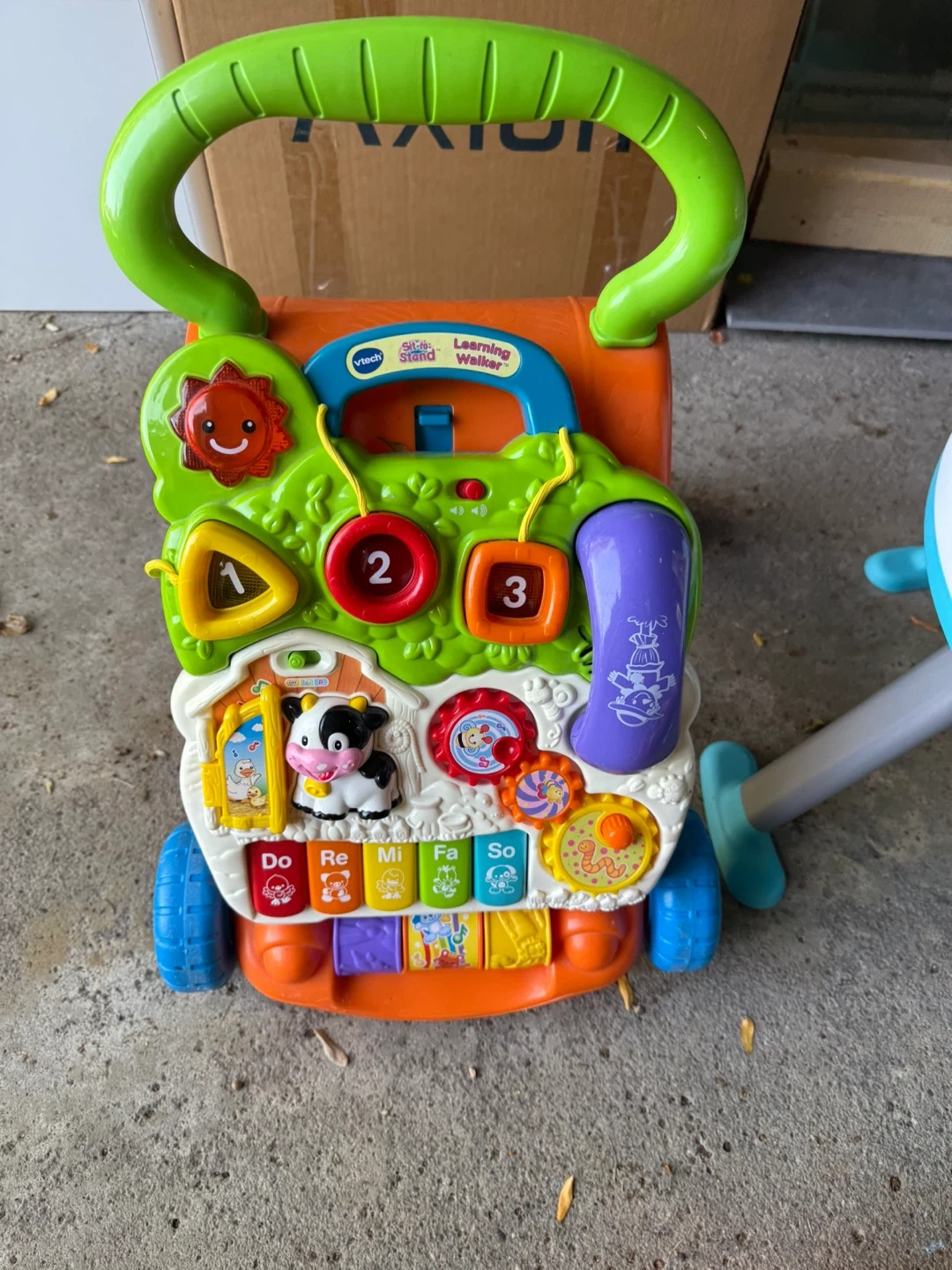 Selling a VTech Sit-to-Stand Learning Walker! It's a fun and interactive toy for little ones learning to walk. Features include a variety of activities and sounds to keep your child entertained and engaged.