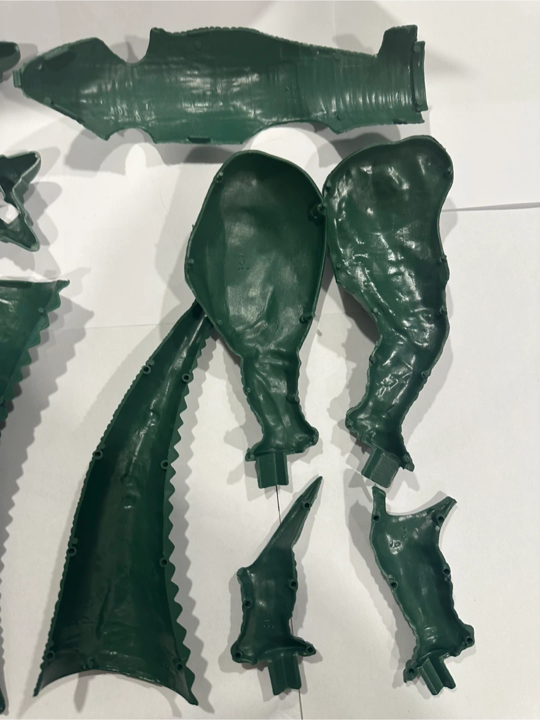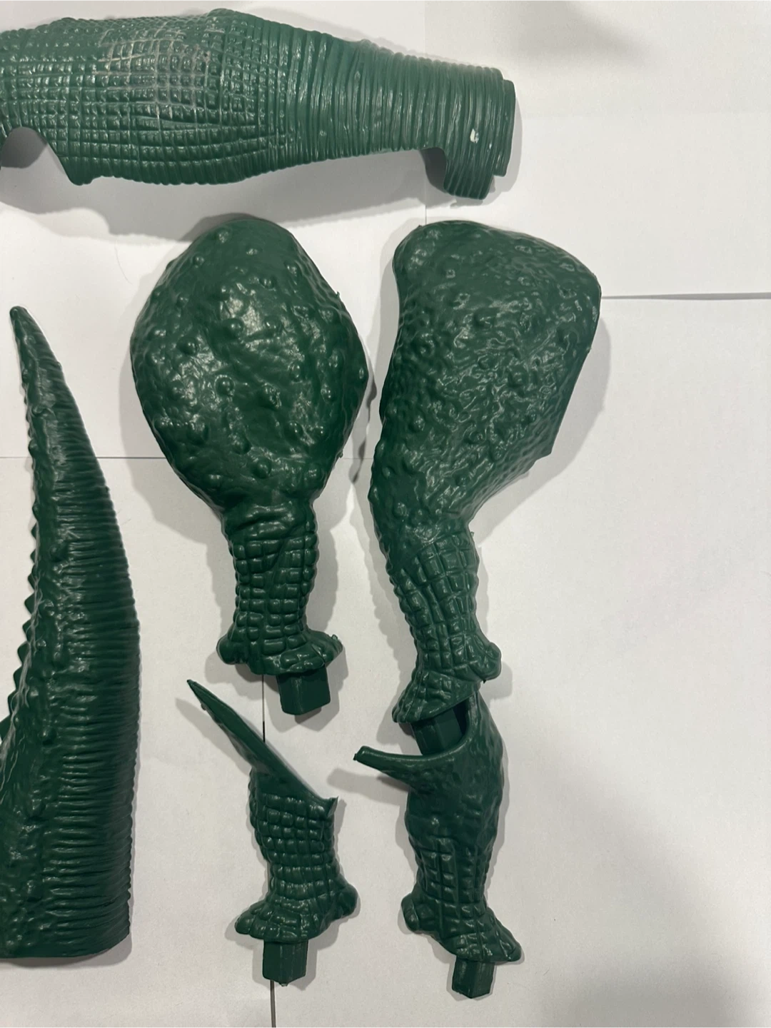 Selling a dinosaur model kit. It appears to be made of green plastic and includes various parts to assemble the dinosaur. Great for a fun project!