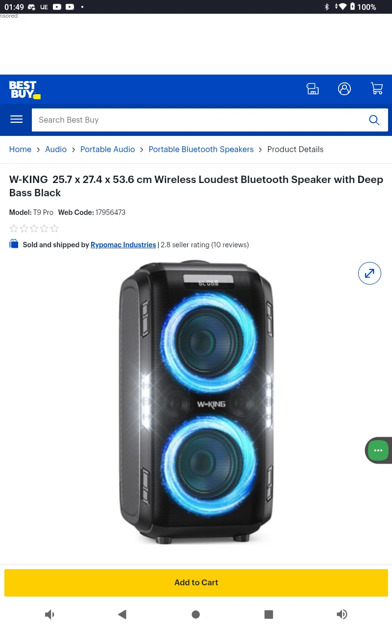 Loudest Bluetooth speaker. Deep bass. Black. 25.7 x 27.4 x 53.6 cm. Model T9 Pro.