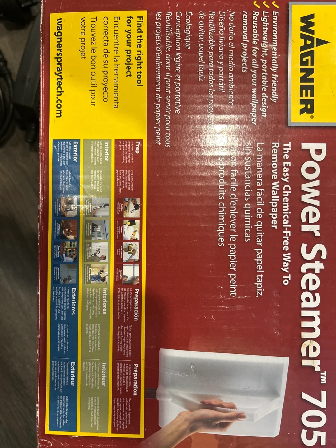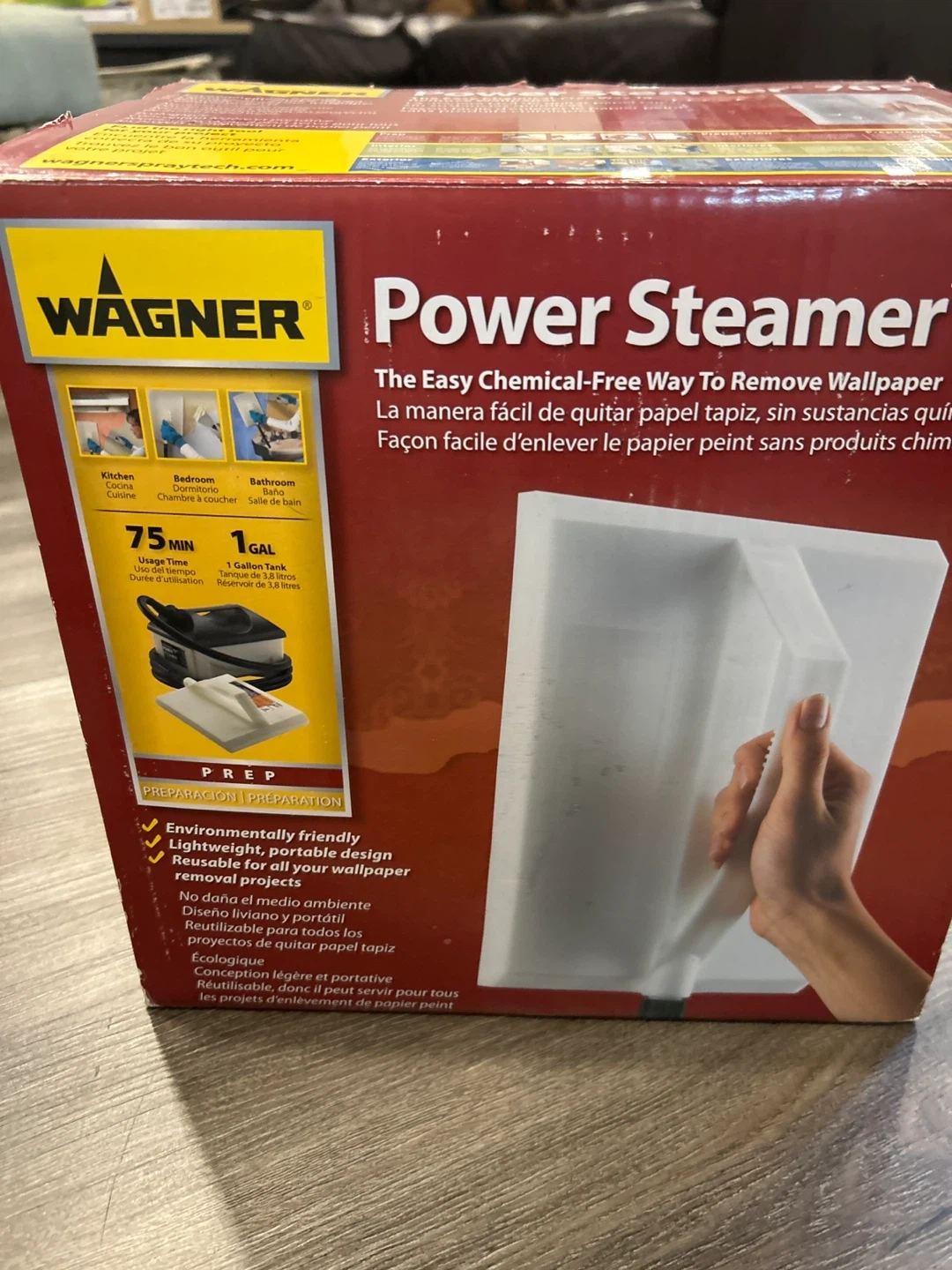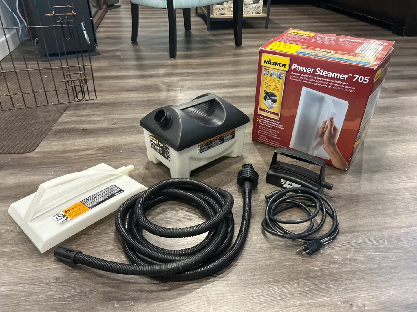 Selling a Wagner Power Steamer 705, the easy chemical-free way to remove wallpaper! It's lightweight and has a portable design, making it reusable for all your wallpaper removal projects. The steamer includes all components and comes with the original box