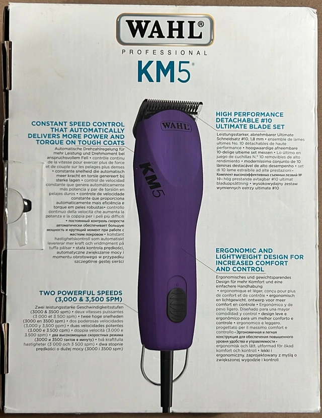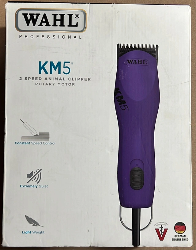 I am selling a Wahl KM5 2-speed professional animal clipper, designed for grooming pets with ease and precision. This clipper features a rotary motor with constant speed control and is engineered in Germany for high performance. The item is new and unused. Key Features: * Two powerful speeds: 3,000 & 3,500 SPM * High-performance detachable #10 ultimate blade set * Ergonomic and lightweight design for increased comfort and control. I've priced this competitively to ensure a quick sale! If the ad is up, it's available! Payment: Cash accepted