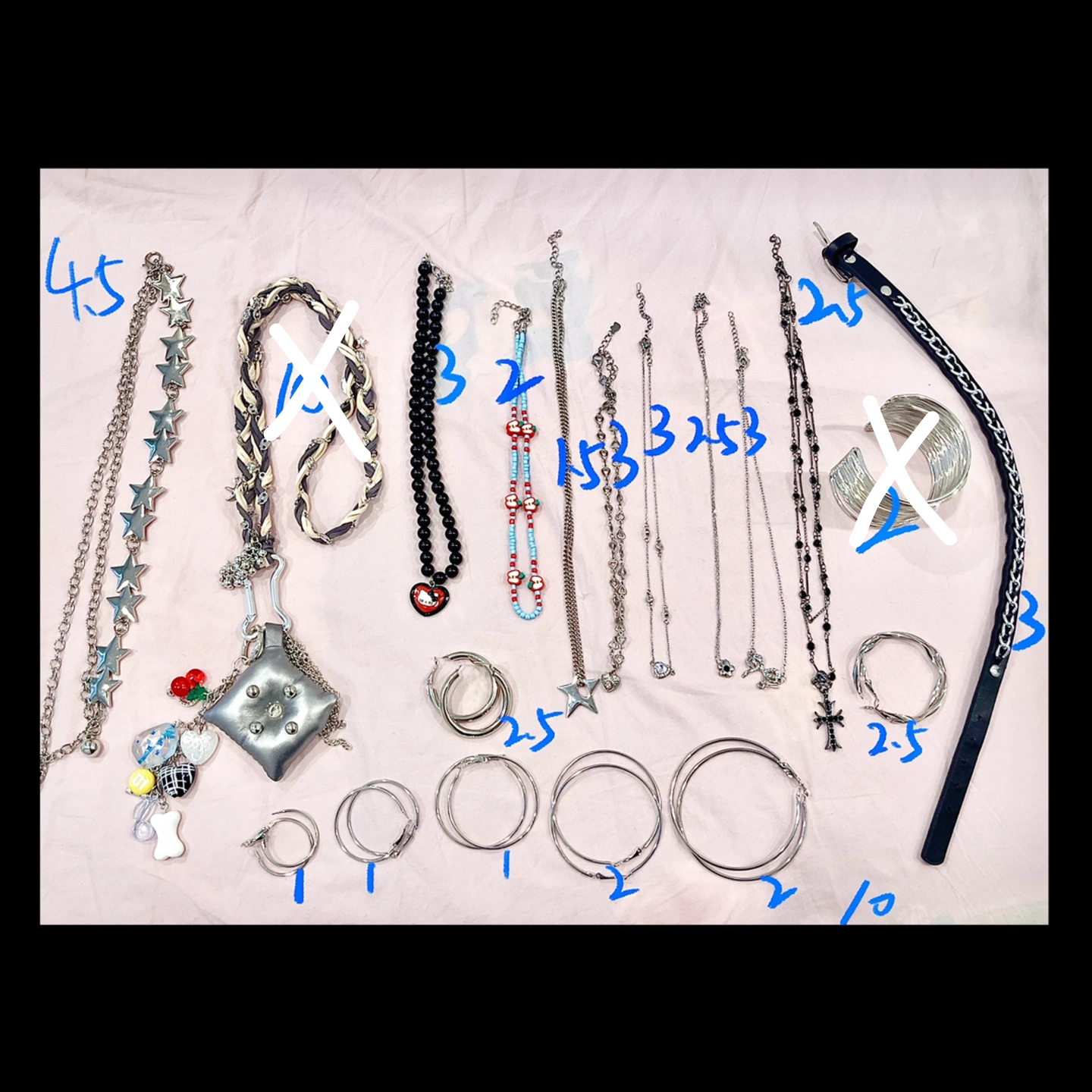 Waist chain, necklace, clip-on earrings (no pierced ears)