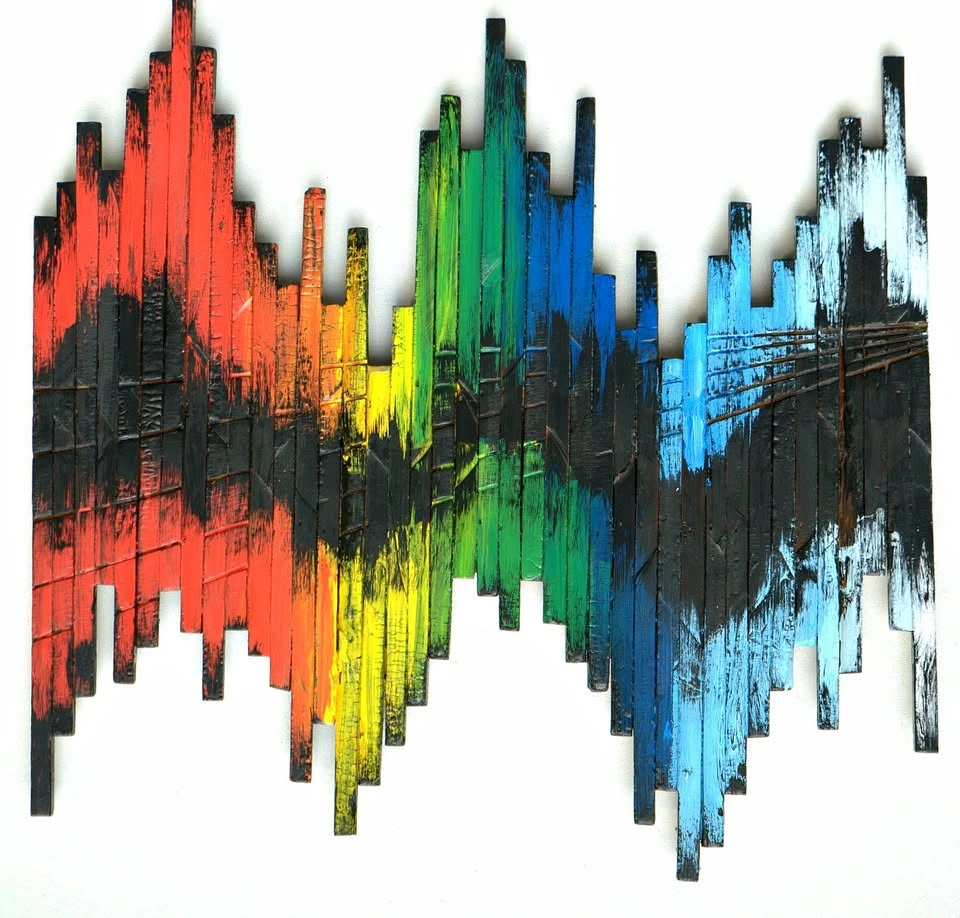 These are made from naturally clean strips of wood used locally in the GTA in the Kiln drying process as Lumber separators (not Pressure treated - no chemicals). Each bundle of wood strips takes about 1 hour to dismantle and plane down to revel it's inner beauty, then it is cut down to size. Each strip yields 4-6 pieces of useable wood that I arrange, glue and brad nail them down as with the Rainbow version Some items are stained or left natural, pieces that have 'Character' or markings on them are used on the face to add interest. They look more like fine pieces of furniture with a little rustic feel. Either way they stand out as a standalone piece of Wall Art or a background to hang anything on. Keys, small pictures, Guitars are but a few uses. As before, for heavier items like Guitars consider a larger one (over 16") and drill holes 16" on centre or in the middle (of the smaller units) and screw directly into your wall studs.