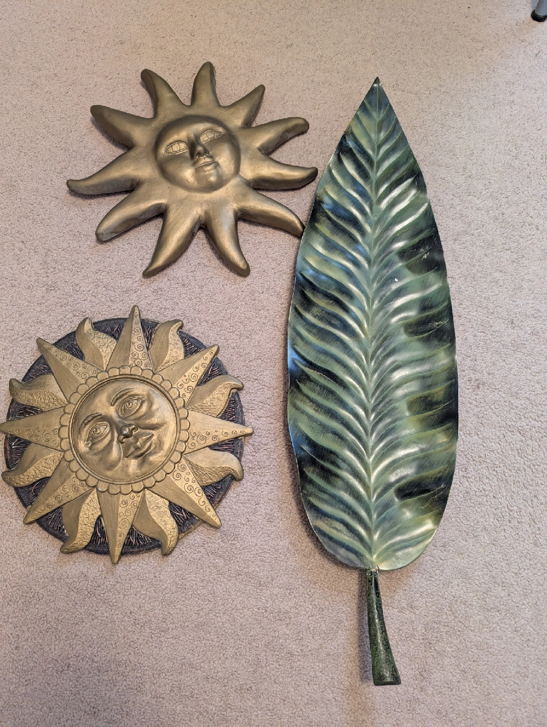 Selling these decorative sun and metal leaf wall hangings! They'd be a great addition to any room.