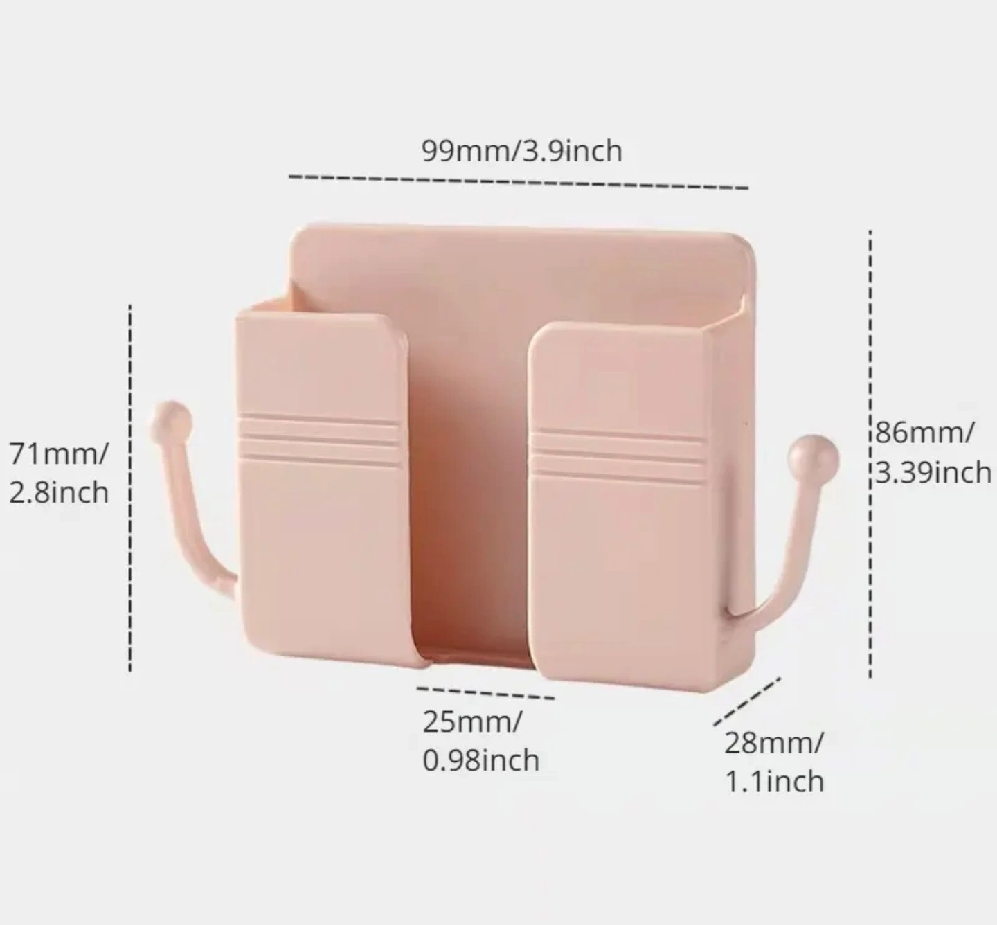 Keep your phone handy with this wall mount holder! It's great for charging or just keeping your phone off the counter. It comes in different colours, including pink, blue, green and yellow. The dimensions are approximately 99mm/3.9inch wide, 71mm/2.8inch high, and 25mm/0.98inch deep