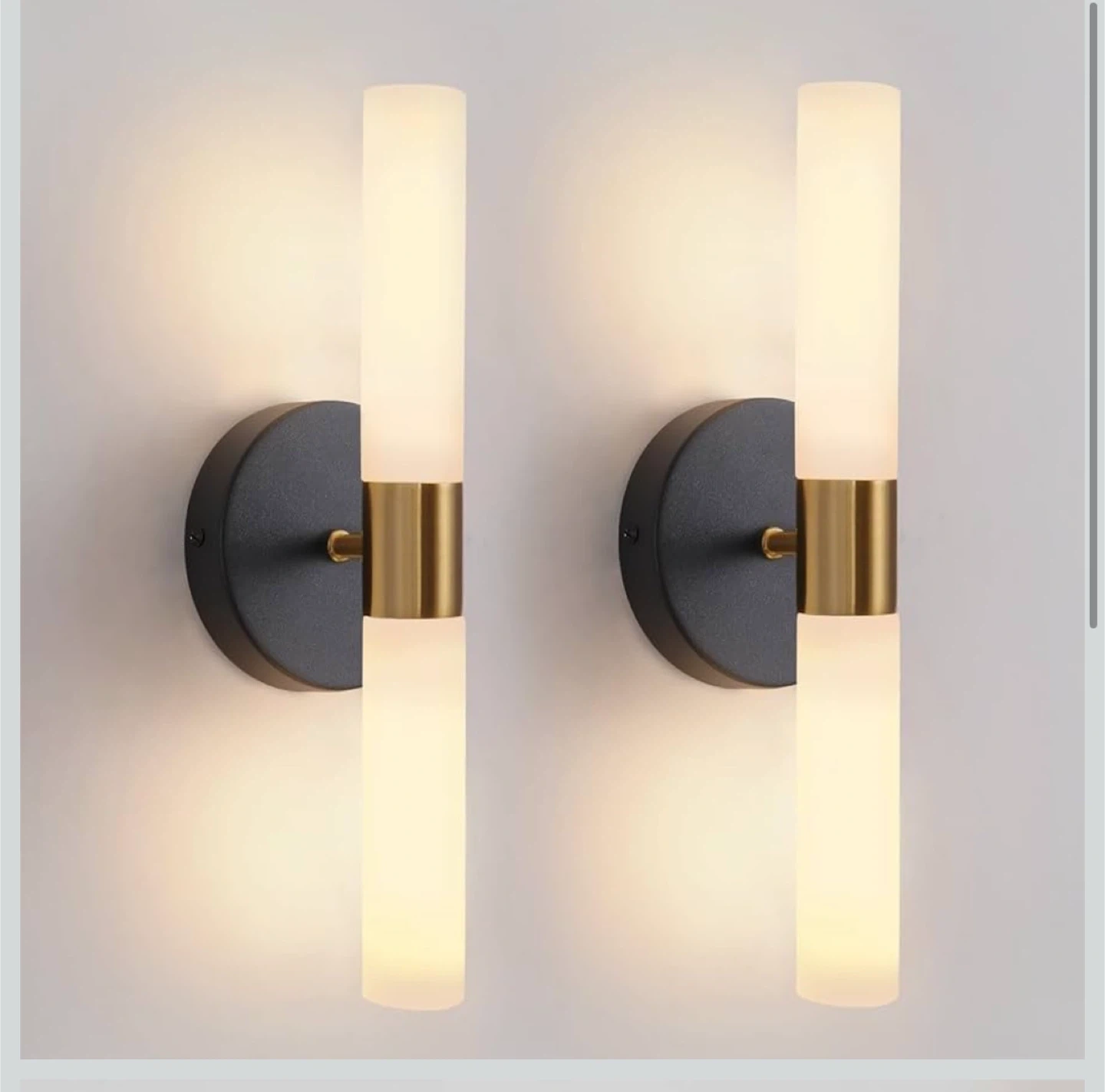 Add a touch of modern elegance to your space with these stylish wall-mounted sconce lights! They feature a sleek black and gold finish, and are easy to install. Specifications: - Voltage: 110-120V - Wattage: G9 Bulb - Material: Iron and Glass - Metal Color: Black and Gold - Installation Method: Wall-mounted - Dimensions: 13.9 inches height, 4.72 inches width, 1.57 inches depth