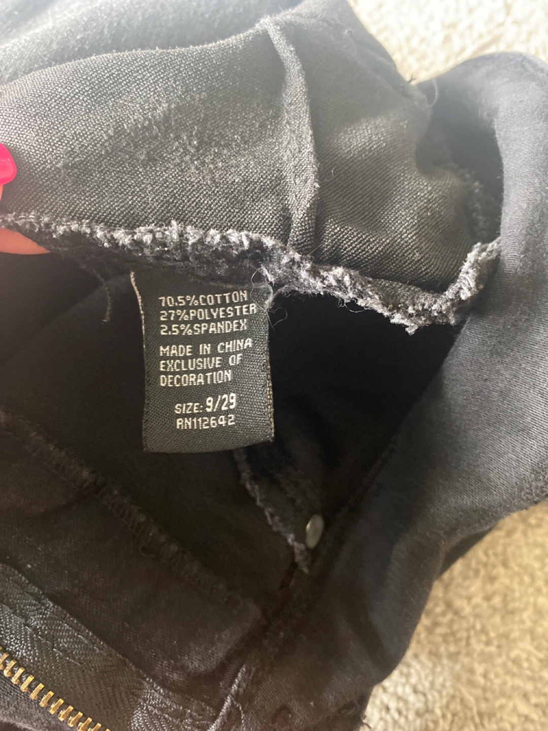 Selling a pair of WallFlower black jeans in size 9/29. They're made of 70.5% cotton, 27% polyester, and 2.5% spandex. Great for everyday wear!