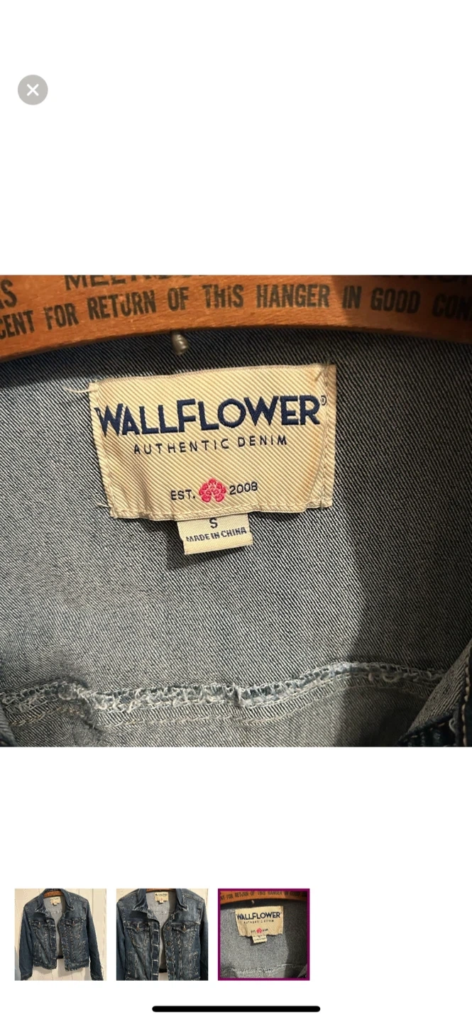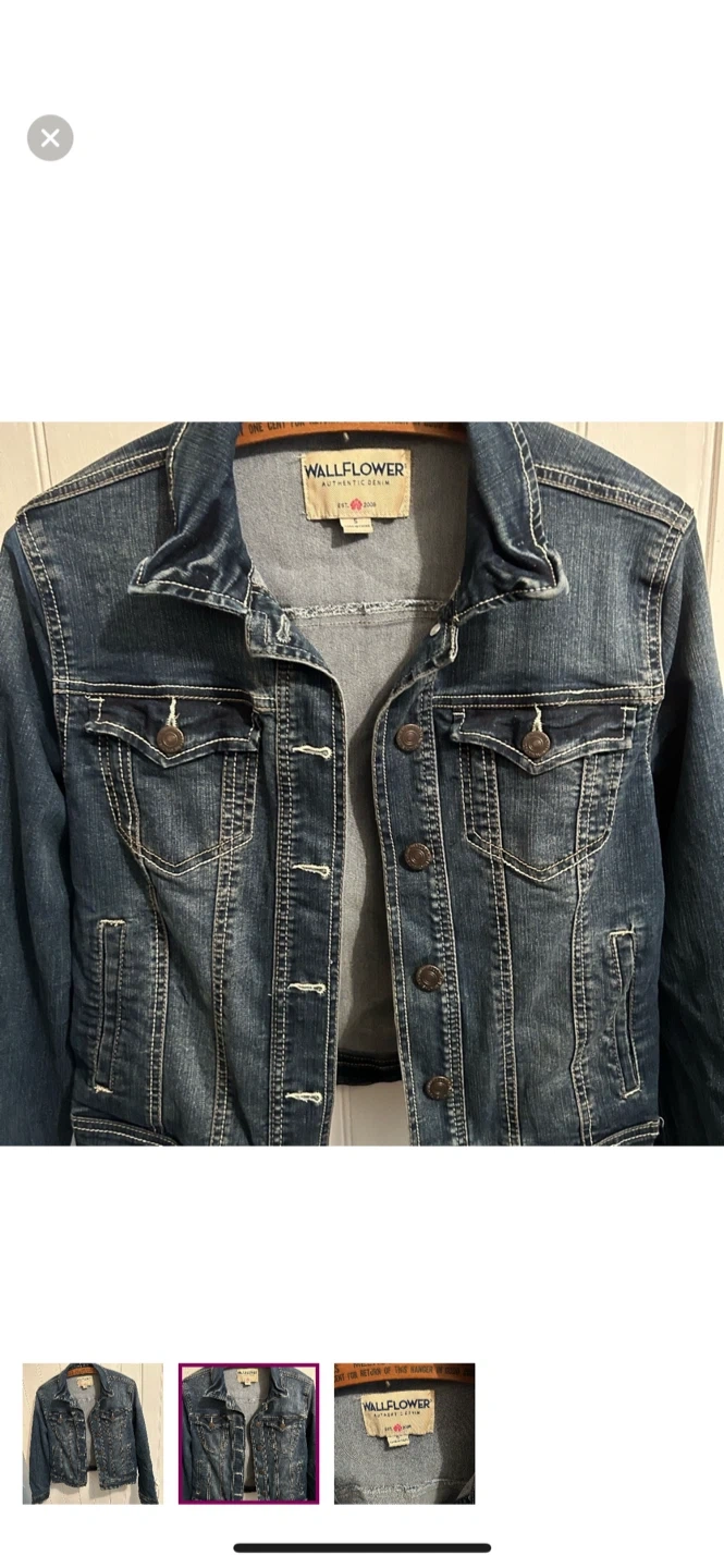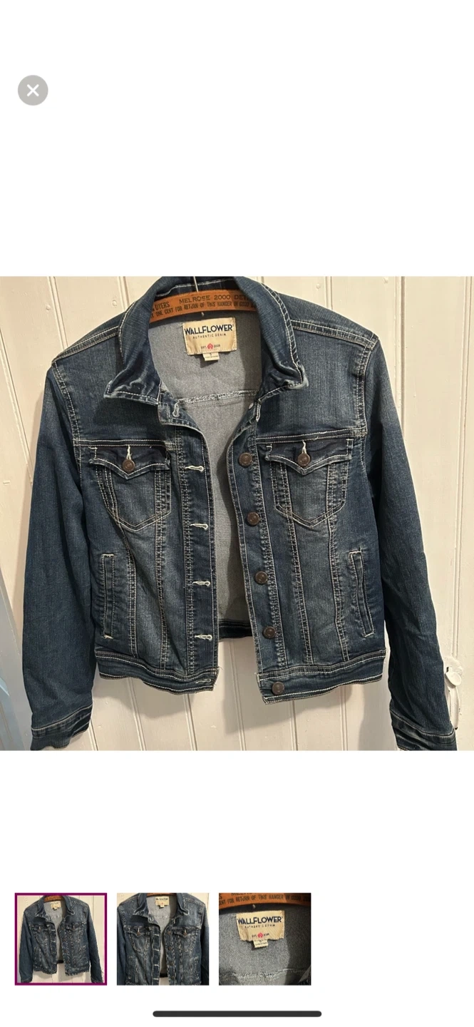 Wallflower brand. Button up denim jacket. Medium wash. Size small. Brand new condition $30 Pickup between kincardine & ripley or I can arrange delivery in port Elgin-Owen sound, walkerton-Durham, wingham-listowel-kw/cambridge, goderich-bayfield, Woodstock & Arthur-Orangeville-Newmarket-Lindsay-Peterborough AREAS.