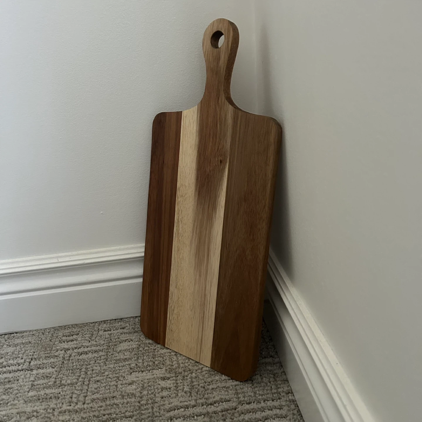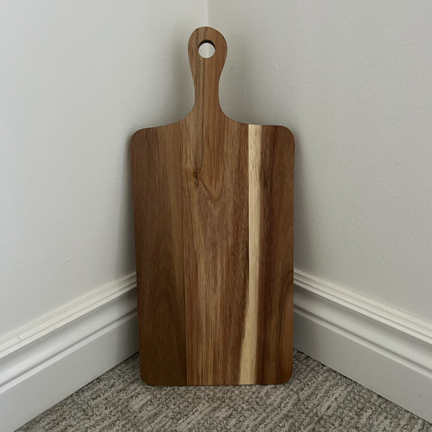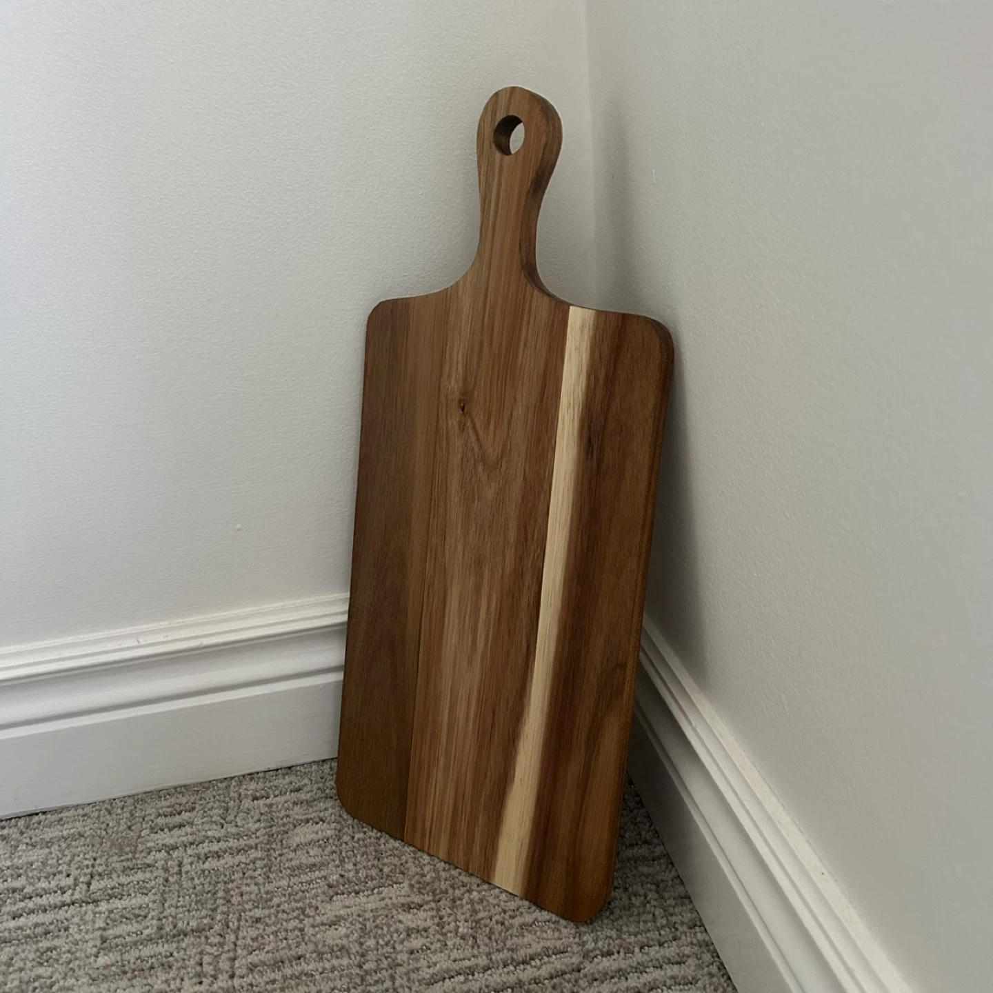 Walnut Wood Cutting Board With Built In Handle Applied With A Food Safe Cutting Board Oil (Dimensions) Board Length - 15 3/4 Inches Board Width - 7 Inches Board Thickness - 3/4 Of An Inch