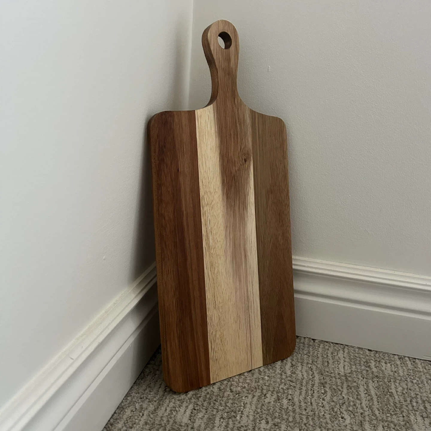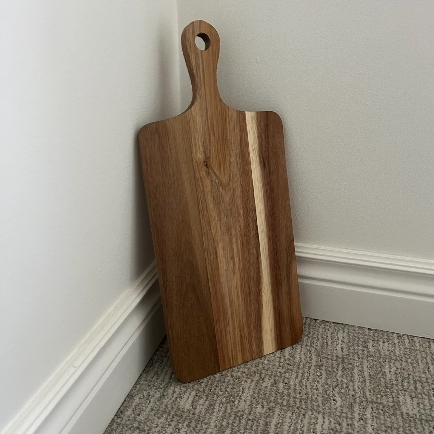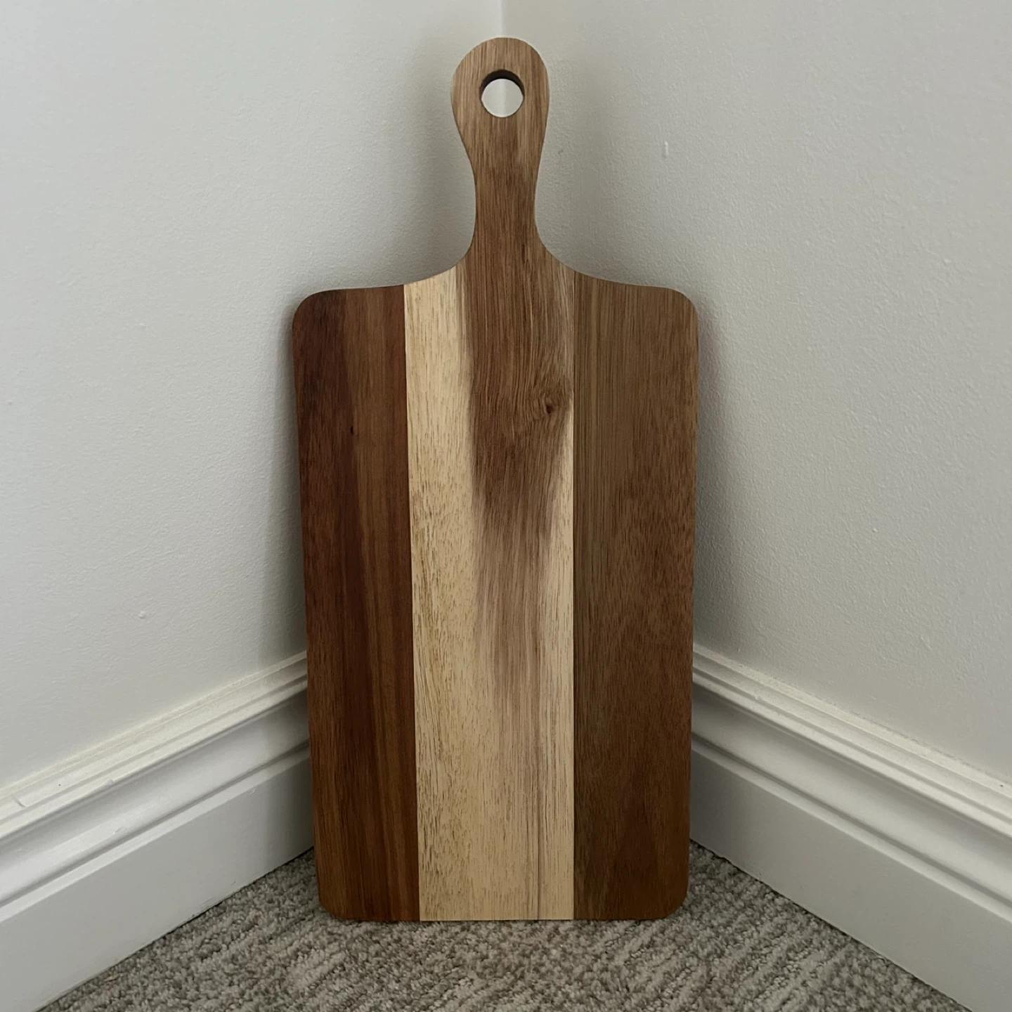 Walnut Wood Cutting Board With Built In Handle Applied With A Food Safe Cutting Board Oil (Dimensions) Board Length - 15 3/4 Inches Board Width - 7 Inches Board Thickness - 3/4 Of An Inch