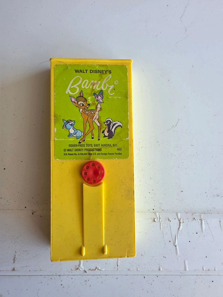 Selling a vintage Walt Disney's Bambi toy by Fisher-Price! This classic toy is from East Aurora, N.Y. It features a charming design with Bambi and friends. A great addition to any Disney or vintage toy collection