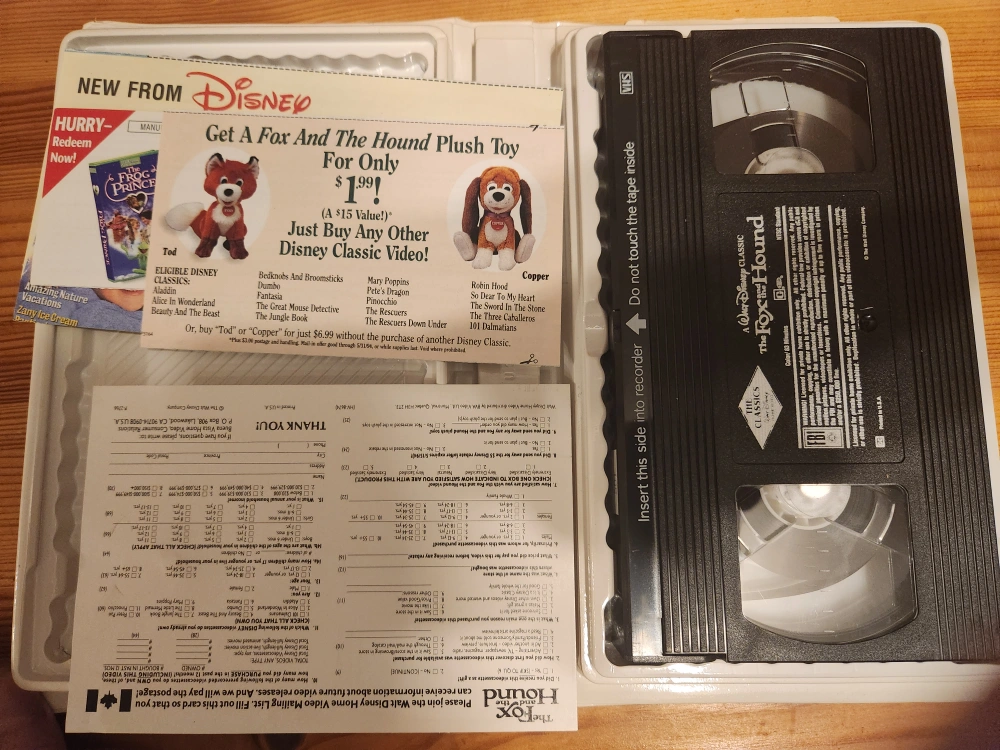 Selling a Walt Disney Classic VHS tape of The Fox and the Hound. In great condition and original packaging, including the original paper inserts.