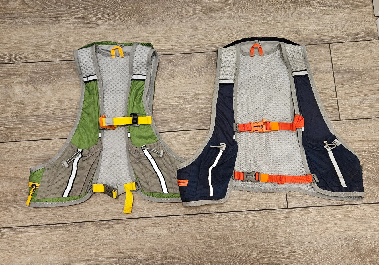 Brand new unused lightweight hydration vests for running, hiking, and cycling. Adjustable (straps). Several pockets for storage including one that holds a 2.0 L water bladder in the back. One in green/yellow and one in blue/orange. The tags do not have a size but both are adjustable to fit a ladies small to a men's large. One vest = $40 Both vests = $70 Cash and pick up only.