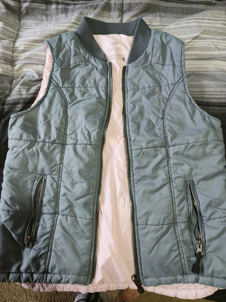 Cozy Warehouse One vest, perfect for layering! It's in great condition and features a quilted design with zippered pockets. Size medium. 1 zipper doesnt have the handle but still useable ( please check the picture)