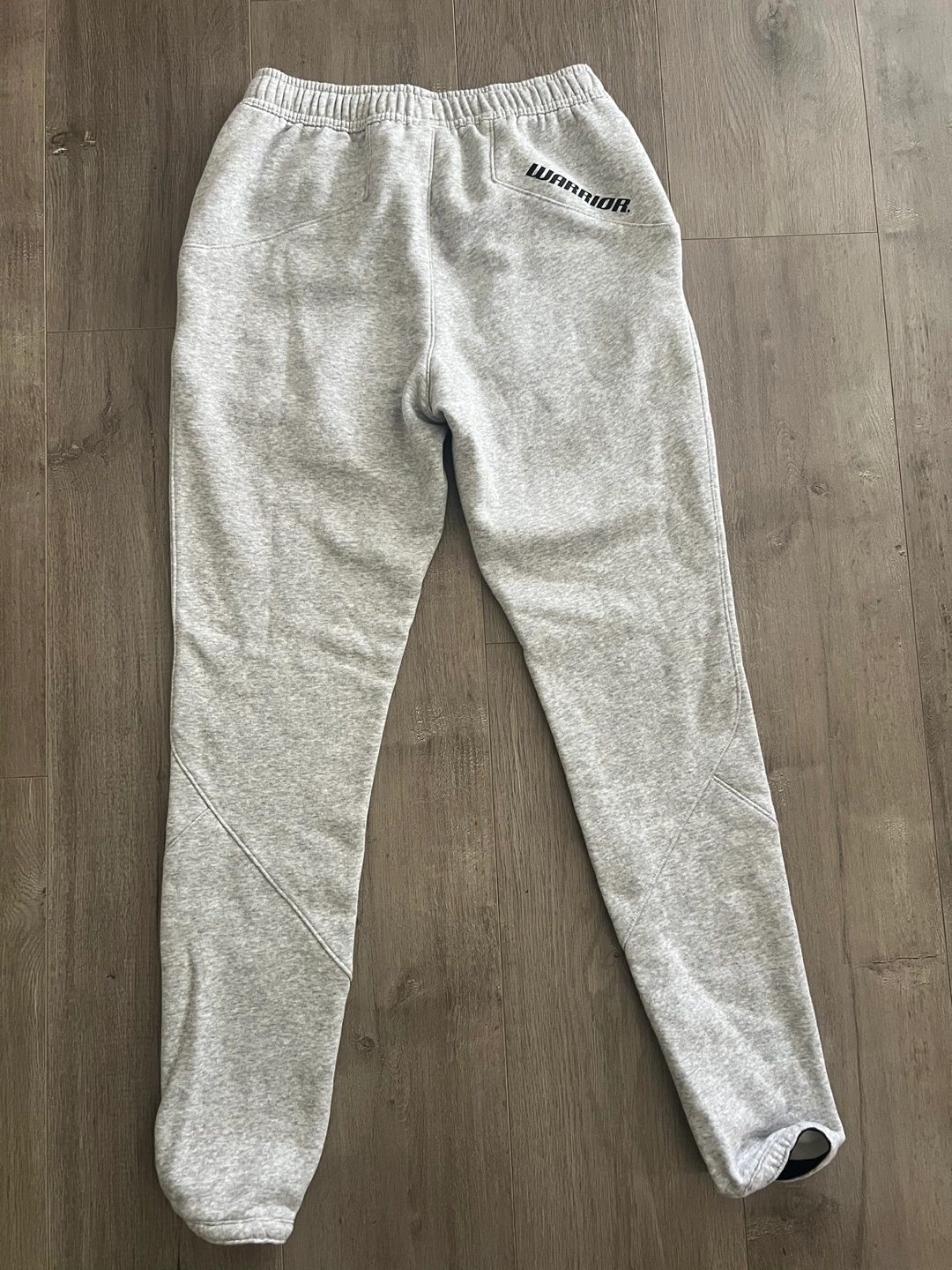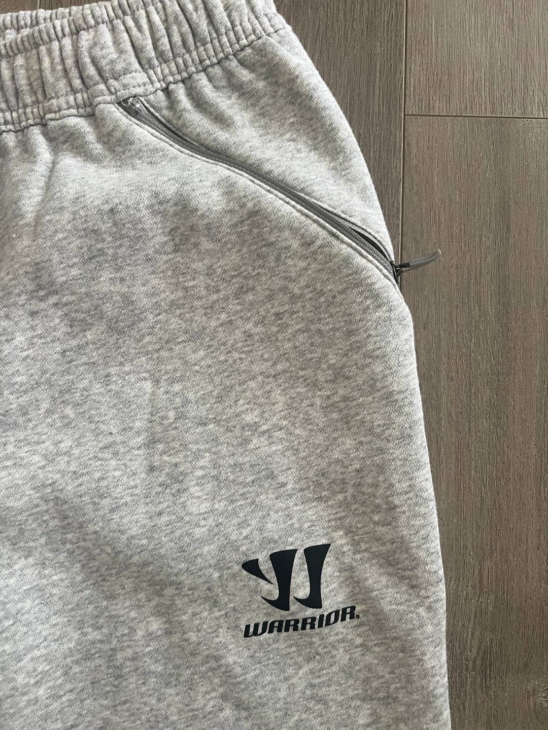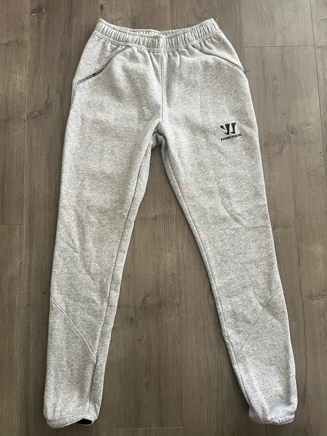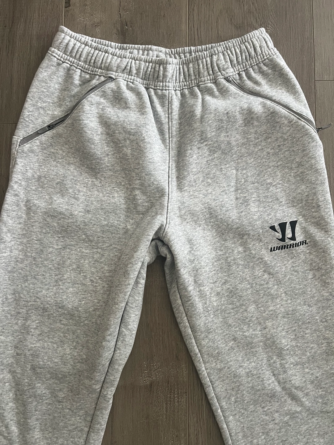 Grey baseball sweats with zippered pockets and elastic cuffs. New Size