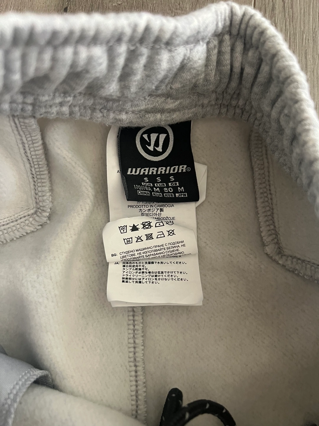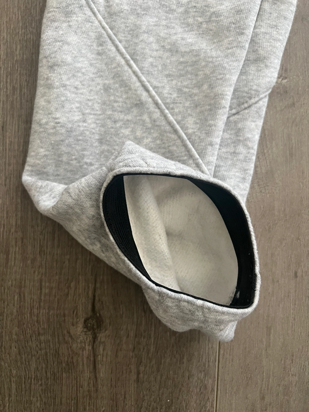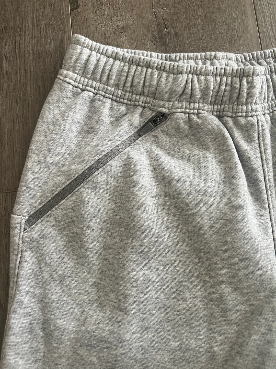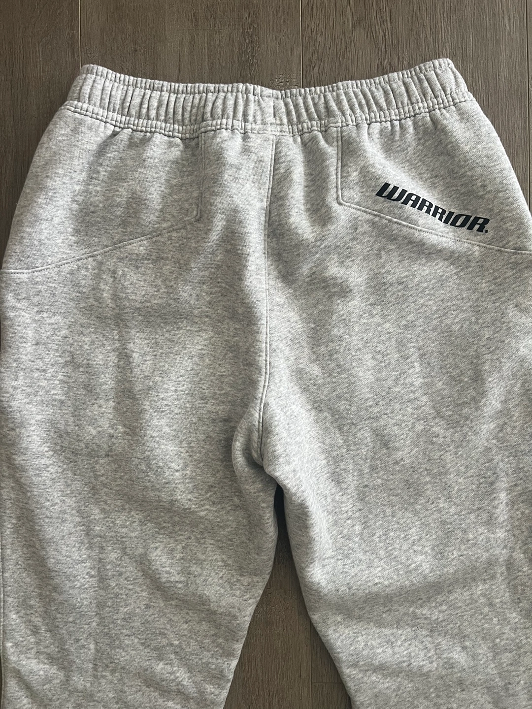 Grey baseball sweats with zippered pockets and elastic cuffs. New Size