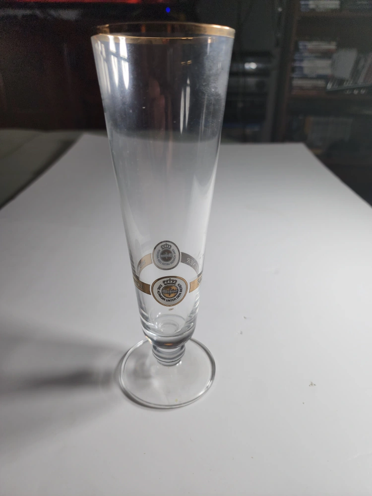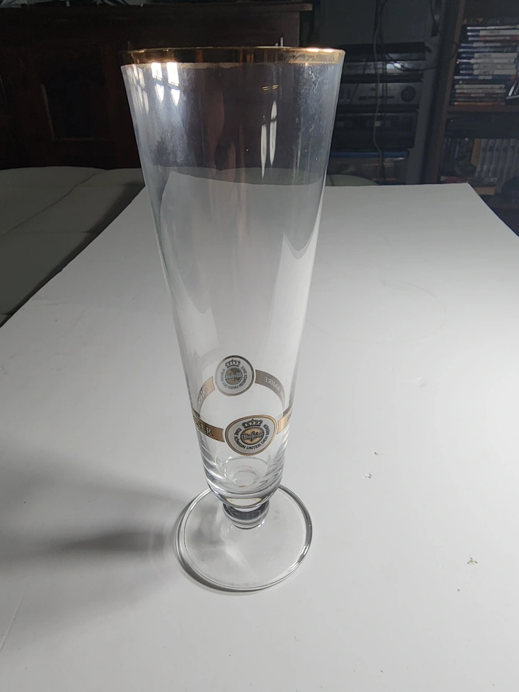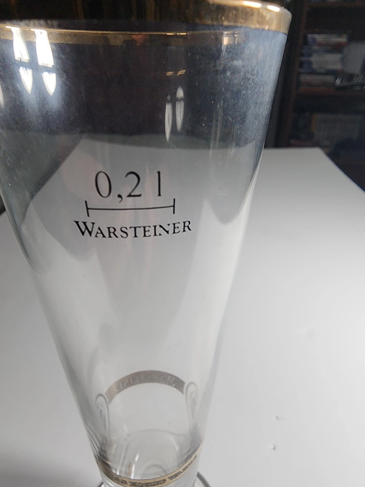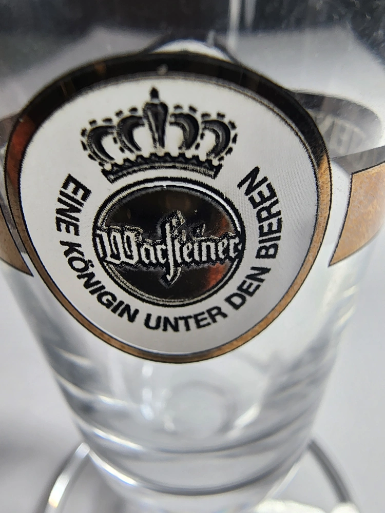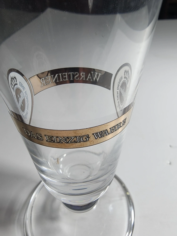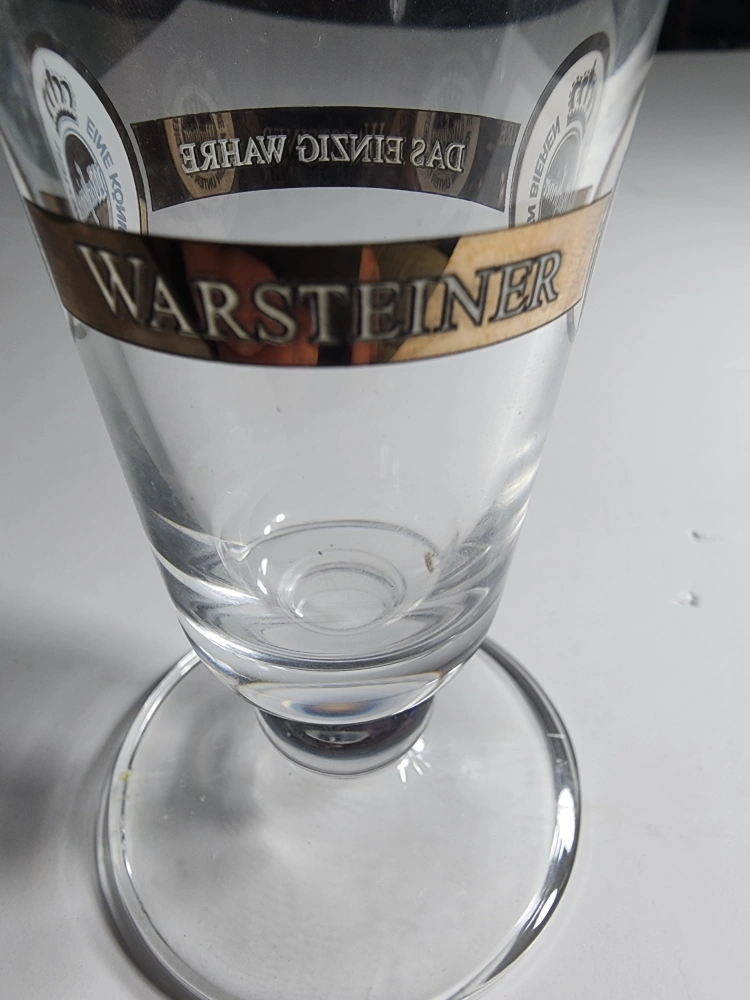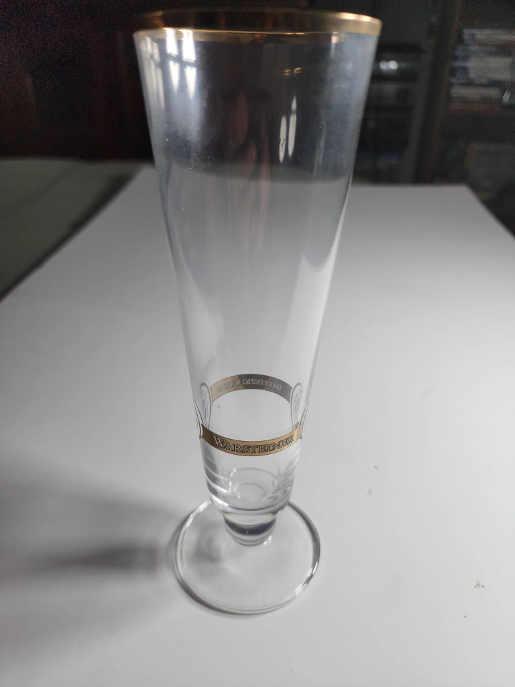 Selling a Warsteiner beer glass. It's in great shape and ready for your favourite brew! The glass has a gold rim and features the Warsteiner logo. Perfect for beer enthusiasts