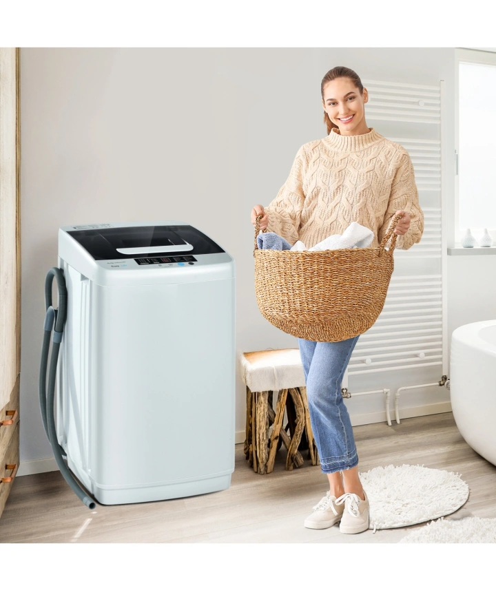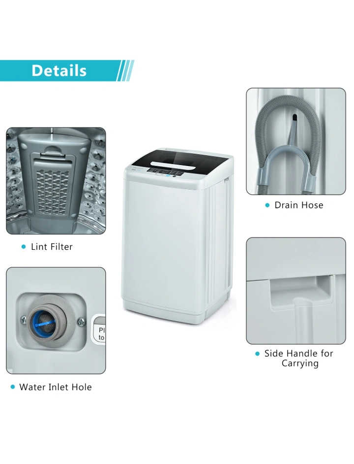 Looking to sell this portable washing machine! It's great for small spaces and easy to use. It includes the drain hose, lint filter, and water inlet hole. It also has a side handle for carrying, making it convenient to move around