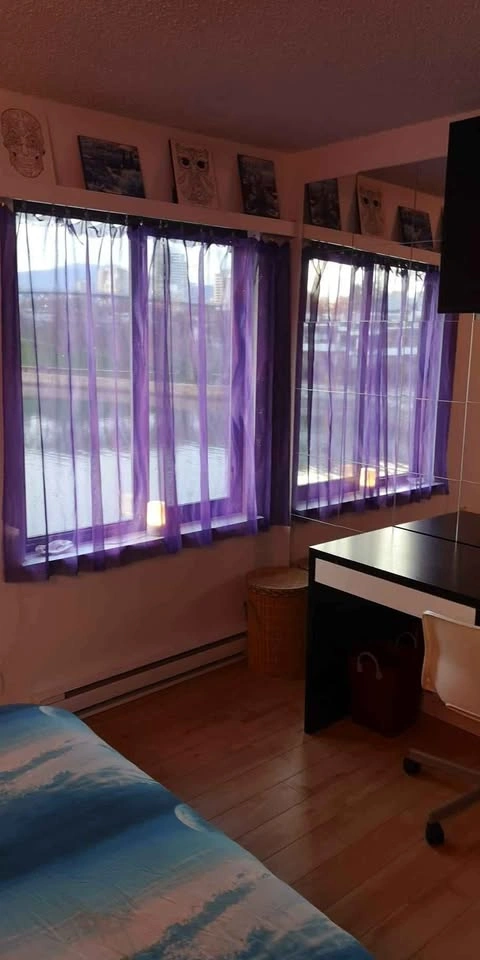 Beautiful waterview room is available in our two story town home near Granville Island, next to Alder Bay and Downtown Vancouver. Room has a double bed, desk, chair, lighting, base board heater, side table and closet, in a quiet 2 story town home in a family complex Bus stop is 3 minute walk away. Downtown language schools and international universities are a 12 minute bus ride away. University of British Columbia is a 20 minute bus ride away, 48 inch TV. 10/min walk from Granville Island. YOU ARE: Mature Female. A Student coming to Vancouver to work or continue education. A professional relocating or just an all around nice person. Reliable and FULLY employed and self sufficient. You are a responsible, mature adult. You are clean, neat and do not smoke anything. You prefer a plant based lifestyle. You are respectful and quiet. You are friendly and you prefer your socializing be done outside the home. You prefer quiet space at home. You provide and cook your own food. You know how to clean up after your self in the kitchen, bathroom and shared spaces. You like to pitch in if there is work to be done...you know...like family... WE ARE: Friendly kind people sharing a Townhouse in False Creek. We are primarily a Vegetarian based house. We are social and we enjoy quiet time at home. THE DETAILS: Rent = $1195 per month. Move in Date: Nov 1st 2025!! Included: WIFI, Heat, Hot Water and use of washer/ dryer machines. This is for the rental of a fully furnished room. Minimum stay 6 months. Possibly longer for the right fit. Please email or text Anita with questions.