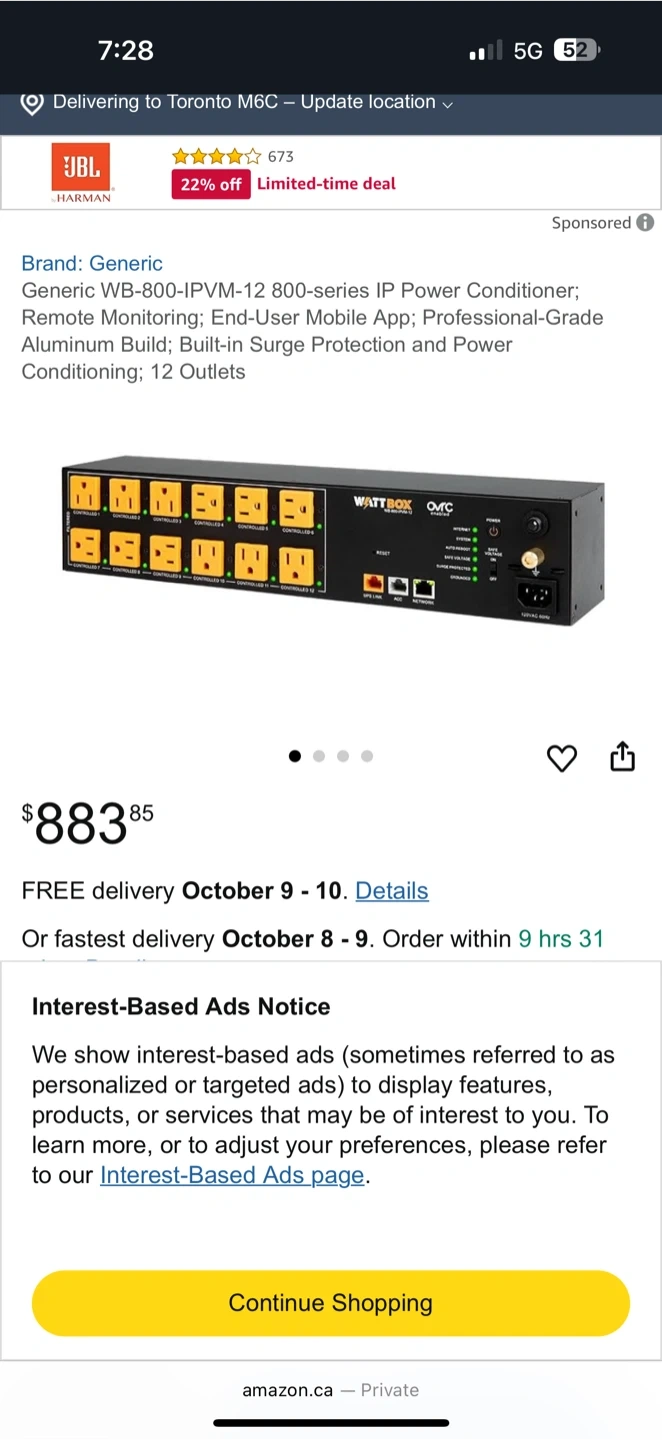 Selling a WattBox WB-800-IPVM-12 Rack Mount IP Power Conditioner. It features 12 individually metered and controlled outlets, surge protection, and remote monitoring. Includes the original box and quick start guide.