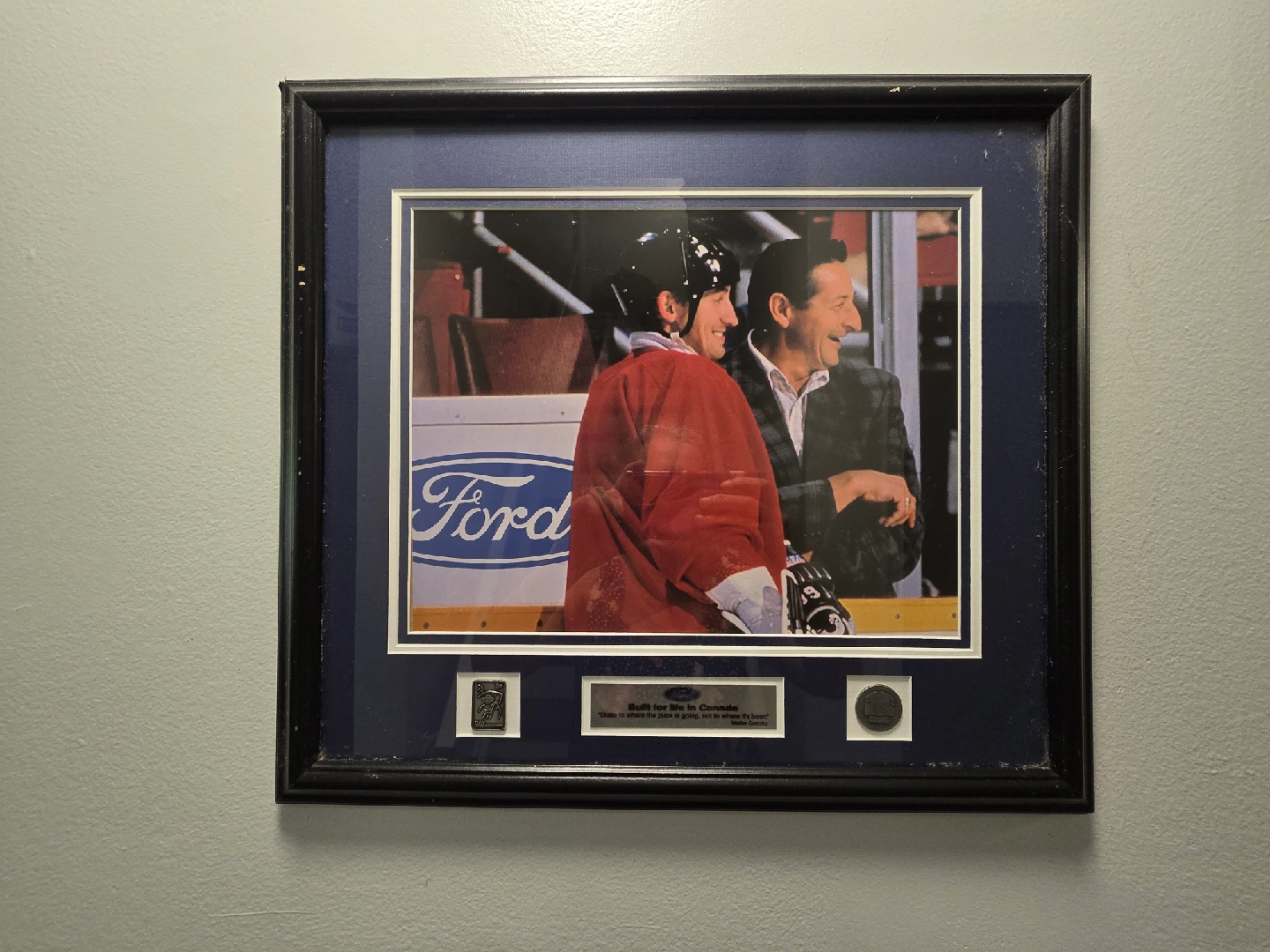 Wayne and Water Gretzsky with a Ford logo in the background. The frame is black and includes a quote: "Skate to where the puck is going, not to where it's been."