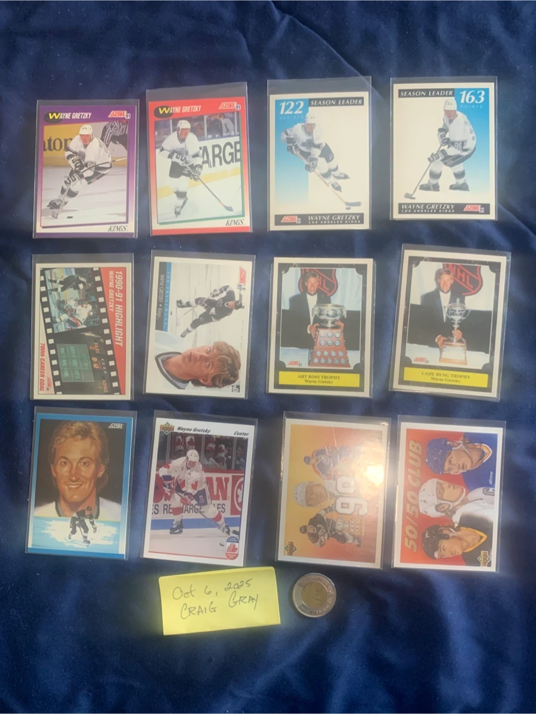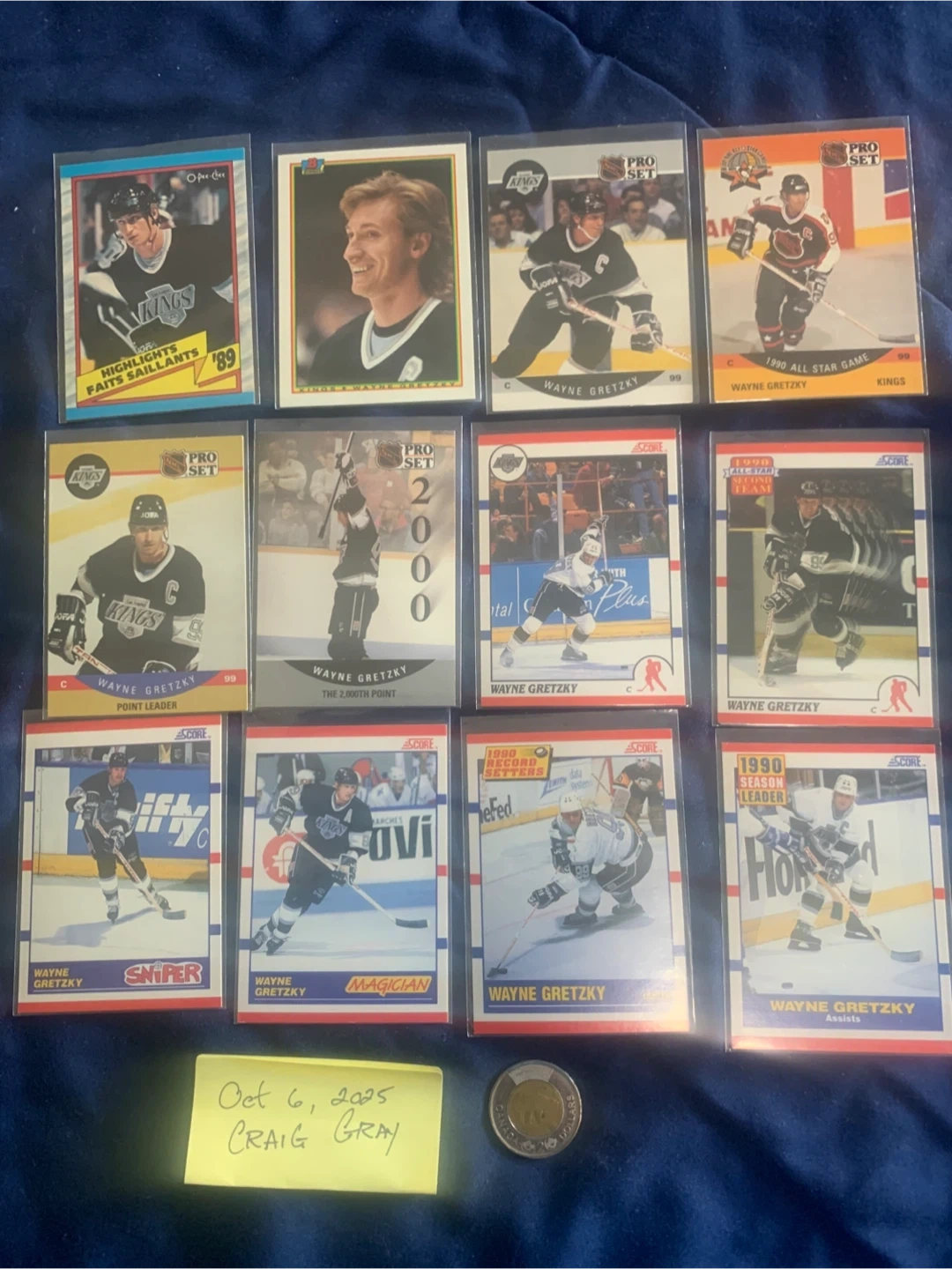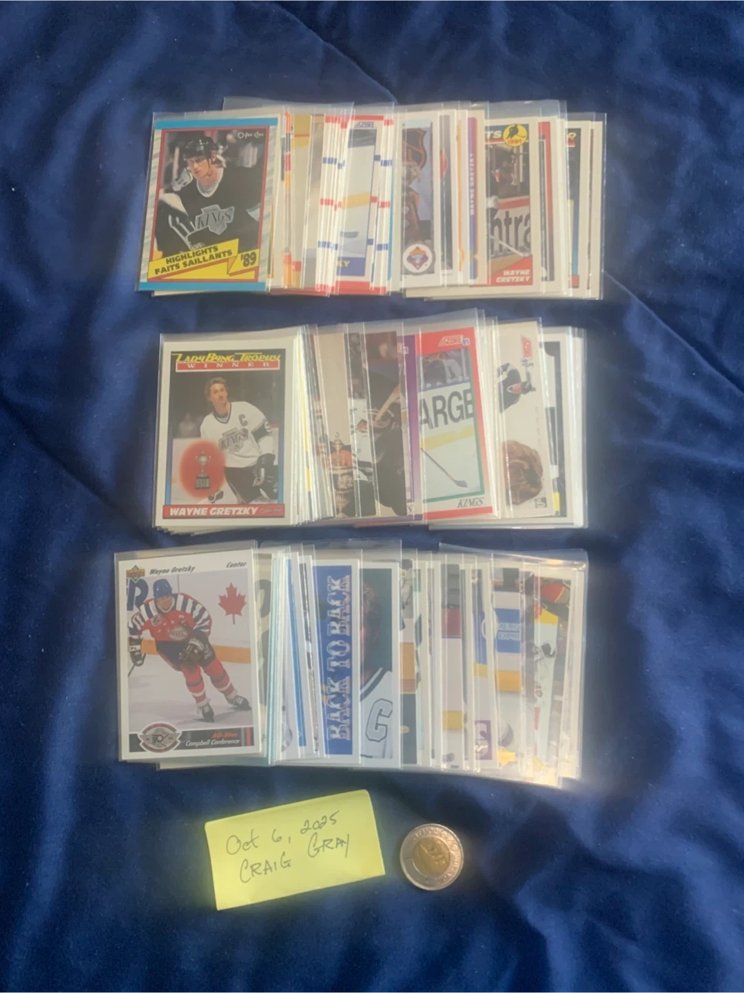 75 Wayne Gretzky cards, good condition. No doubles, various years and makes of cards. Most from early 90’s. All cards are in penny sleeves. Shipping available within Canada at buyers expense ( once Canada Post goes back ) Or can be picked up in Bolton $45