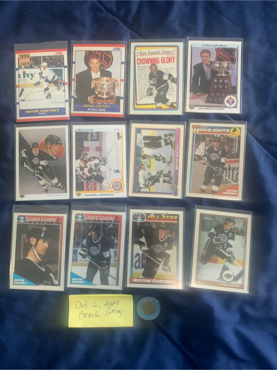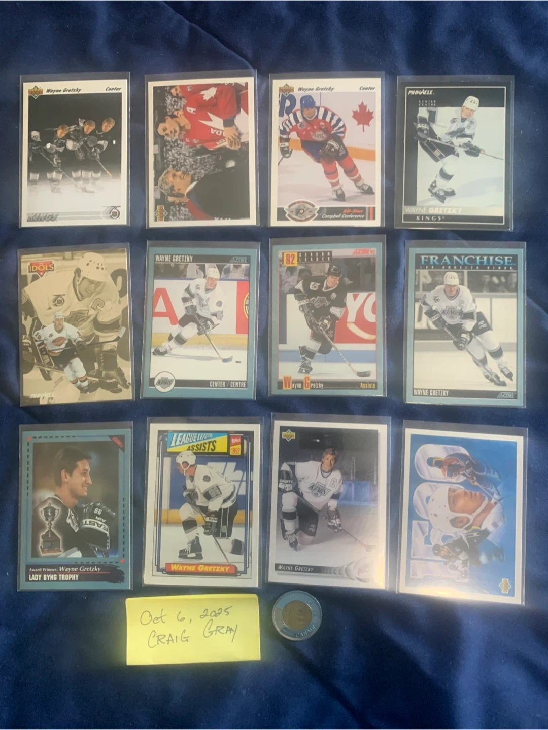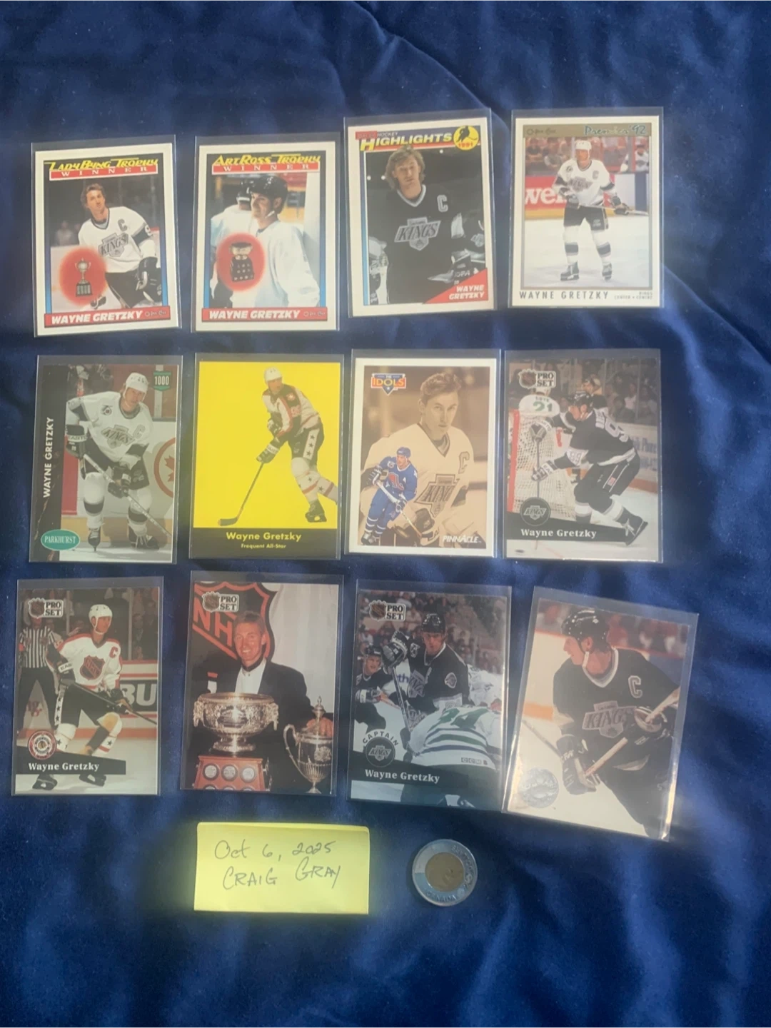 75 Wayne Gretzky cards, good condition. No doubles, various years and makes of cards. Most from early 90’s. All cards are in penny sleeves. Shipping available within Canada at buyers expense ( once Canada Post goes back ) Or can be picked up in Bolton $45