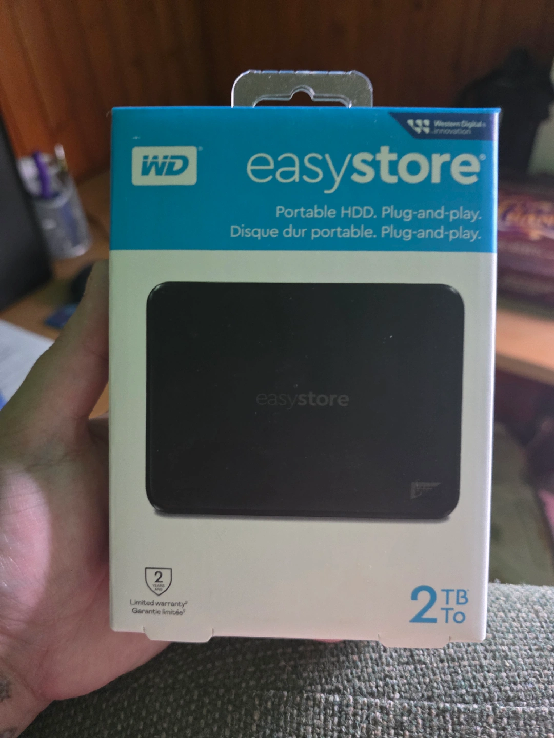 Selling a brand new WD easystore 2TB portable HDD! It's a plug-and-play device, making it super easy to use. Perfect for backing up your files or expanding your storage on the go. STILL SEALED!!