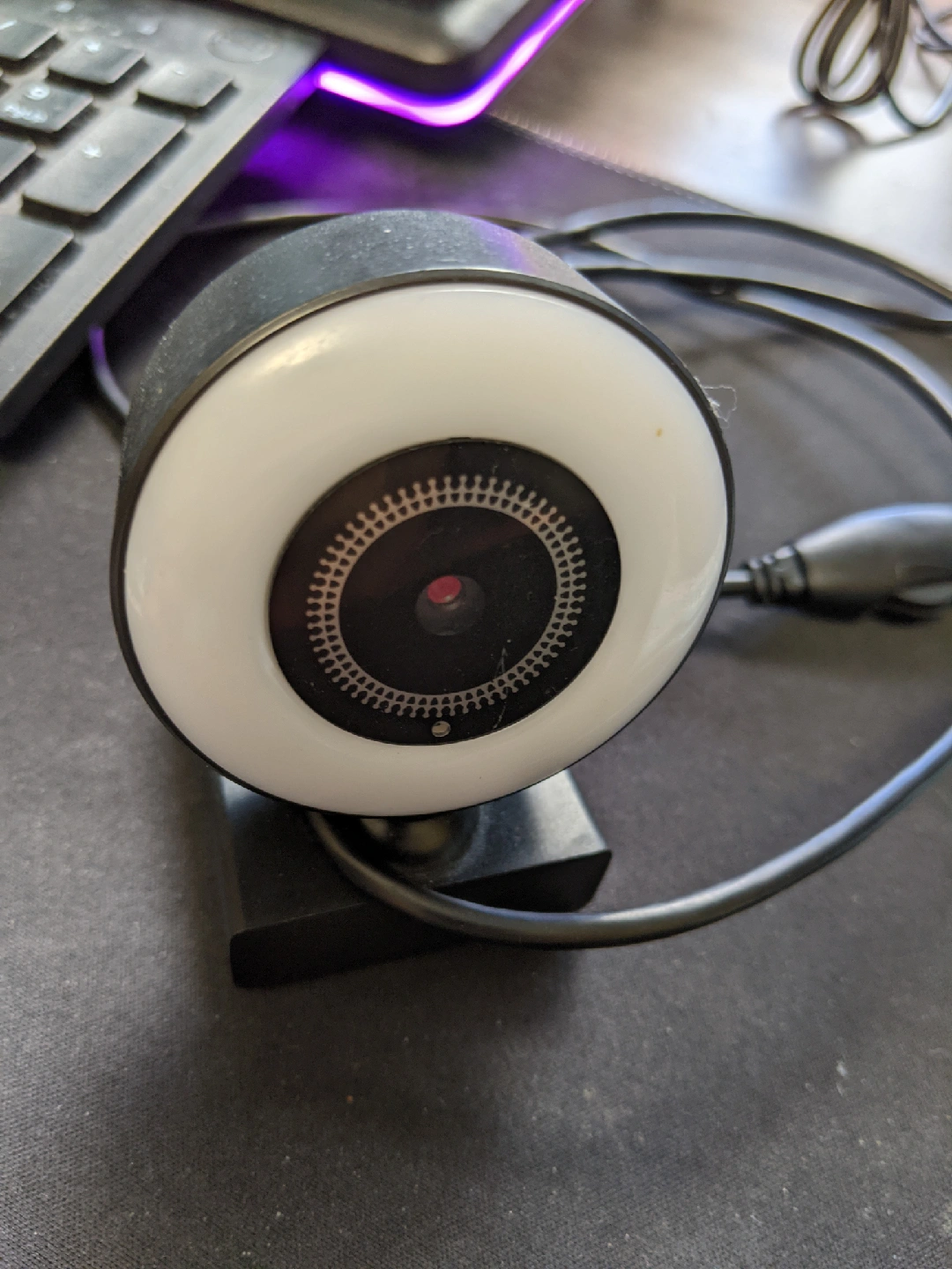 Selling a webcam that comes with a built-in ring light! It's in great condition and perfect for video calls or streaming. The ring light provides nice, even lighting for a more professional look.