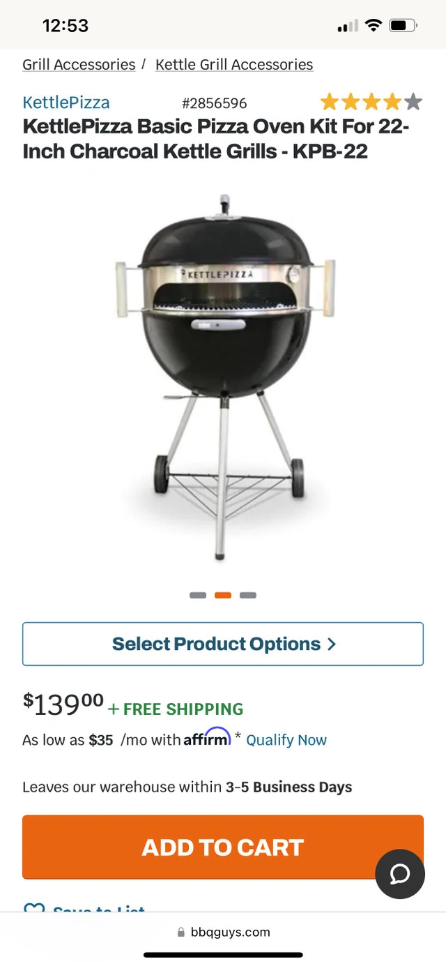 KettlePizza for Weber 22” BBQ. Easily transform your kettle grill into a wood fired pizza oven with our Basic KettlePizza Oven kit. Unit fits on top of your existing kettle grill and includes everything you need to start making woodfired pan pizzas at home. Parts and accessories included in the Basic kit are as follows: Stainless steel insert with handles fits 22.5” charcoal grills, includes an easy to read thermometer. Some basic assembly is required, but no tools are necessary. Proudly made in the USA. For Sale By: Owner