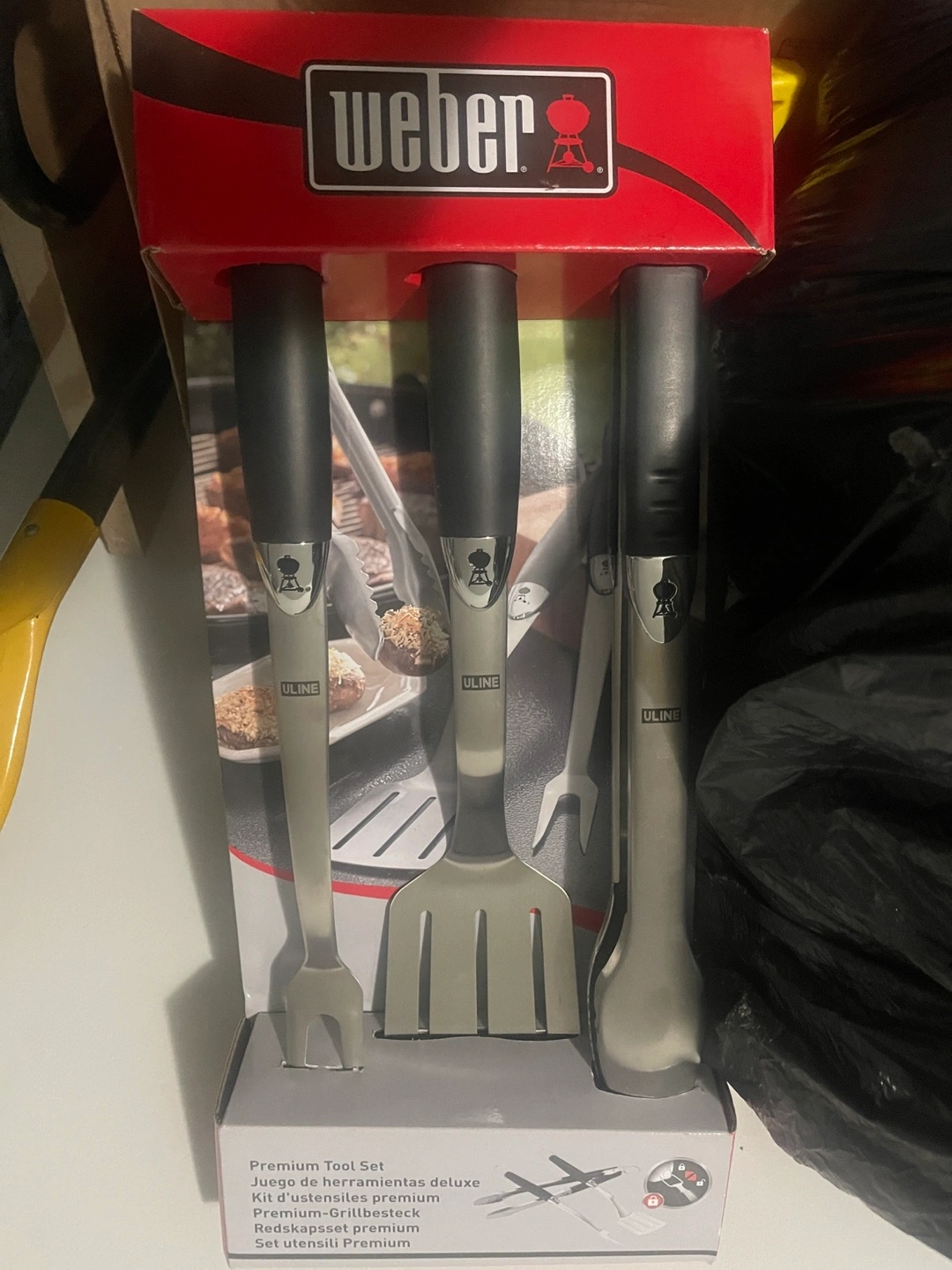 Weber Premium Tool Set for all your grilling needs! Includes a spatula, tongs, and fork. Perfect for any BBQ enthusiast