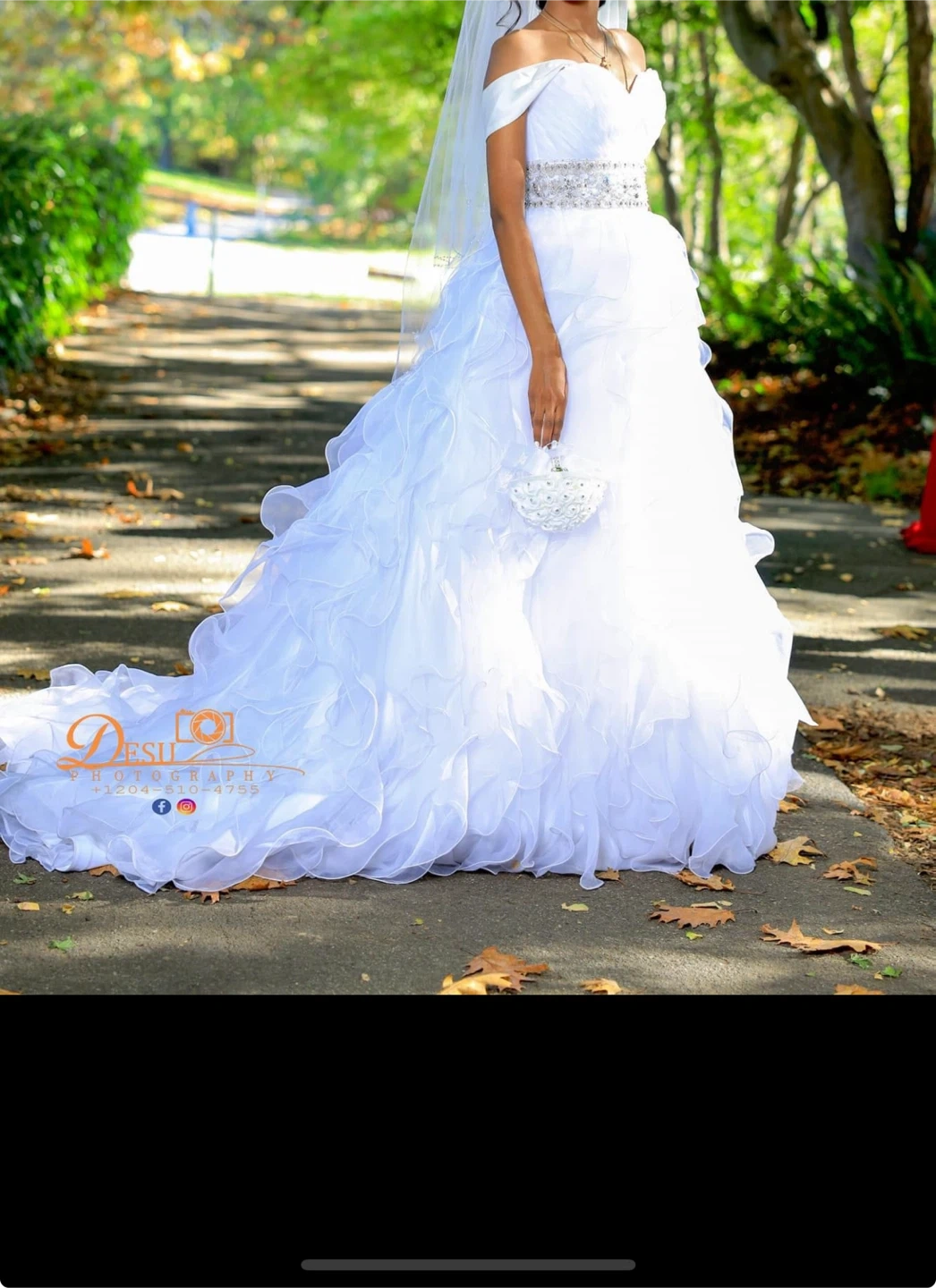 It is a brand new wedding dress that I only used once. The size of this dress is medium.