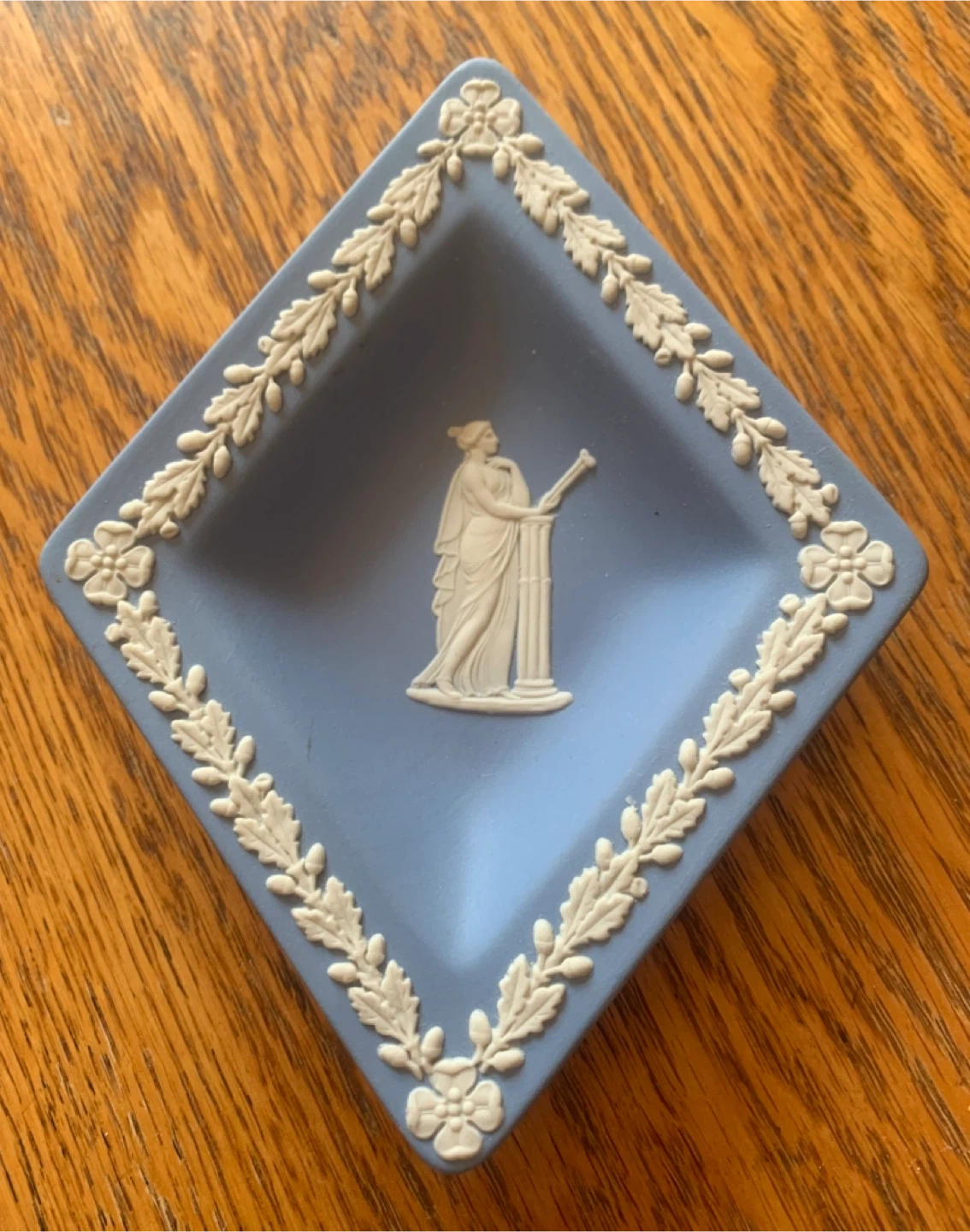 Selling a lovely Wedgwood Jasperware trinket dish! It's a beautiful light blue colour with white bas-relief decorations. Perfect for holding small items or as a decorative piece.