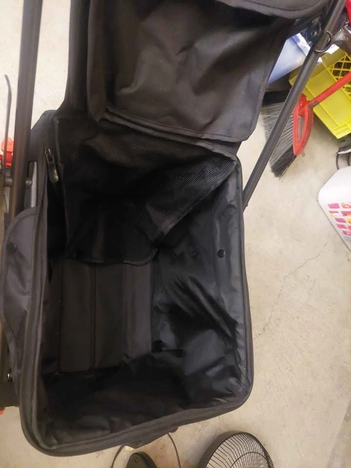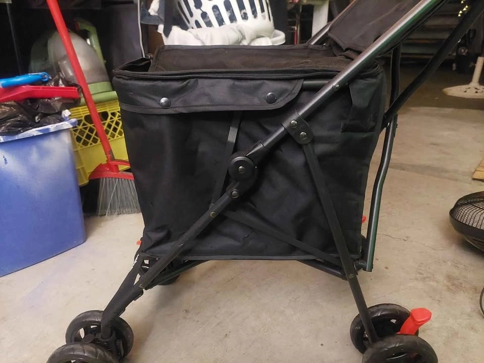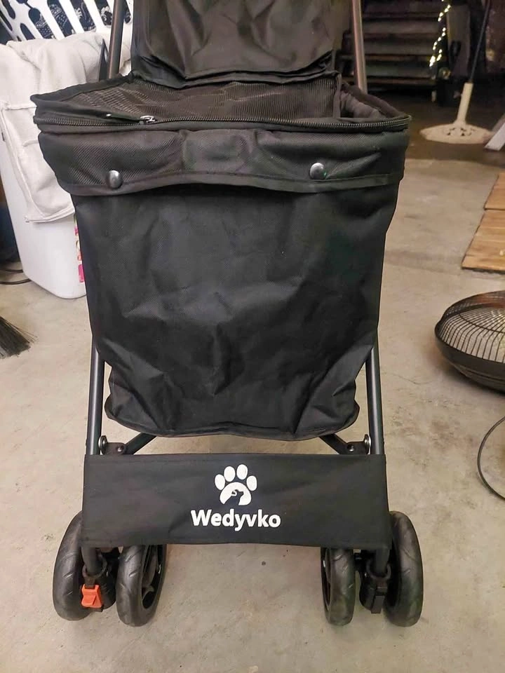 Selling a Wedyvko pet stroller in black! It's in good condition and folds up for easy storage and transport. I bought it in error from somebody and I've never used it. Perfect for taking your furry friend on walks or errands