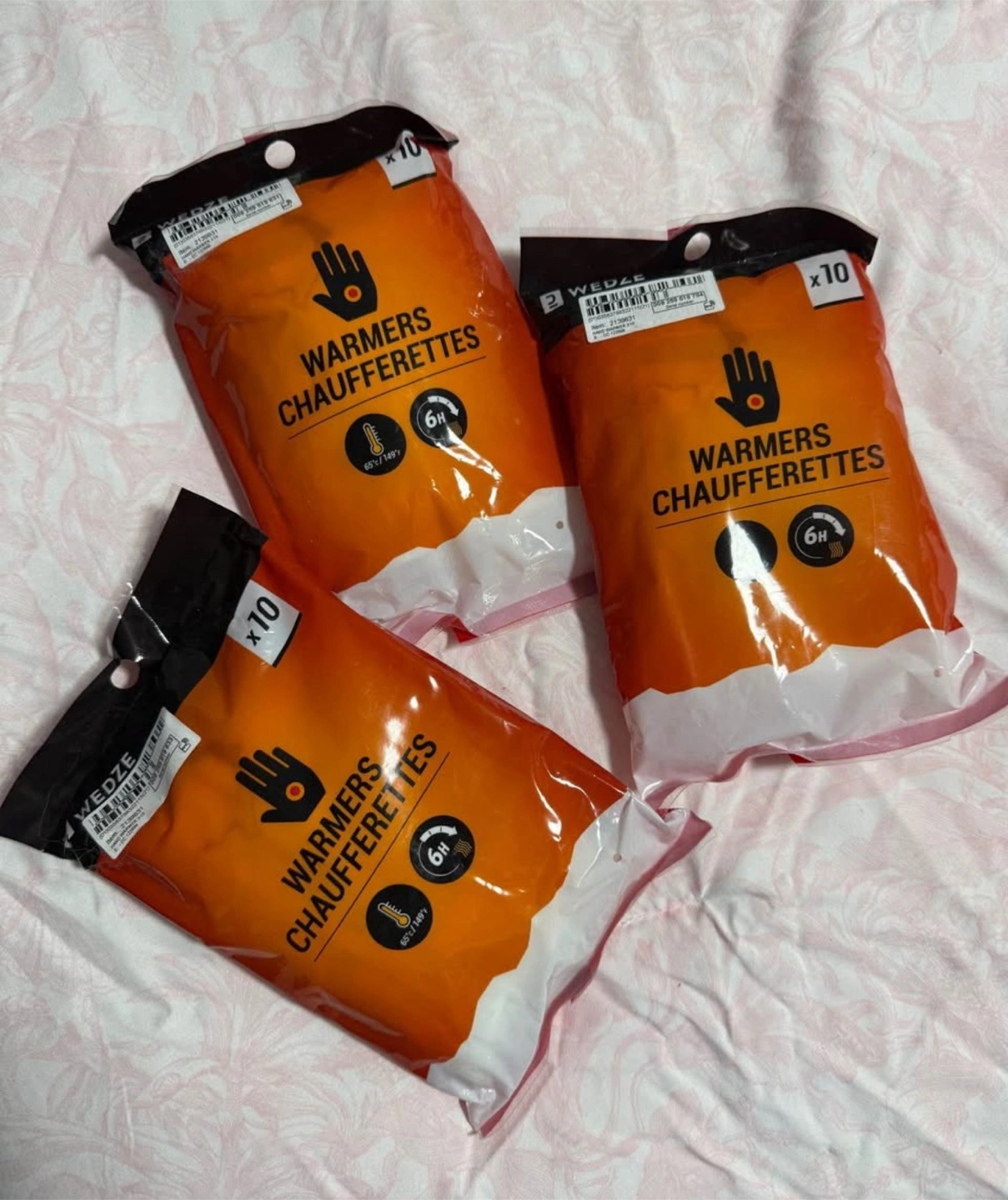 Brand New warmer pads. Perfect for winter. Heat last up to 6 hours. Take all 3 packs for $20