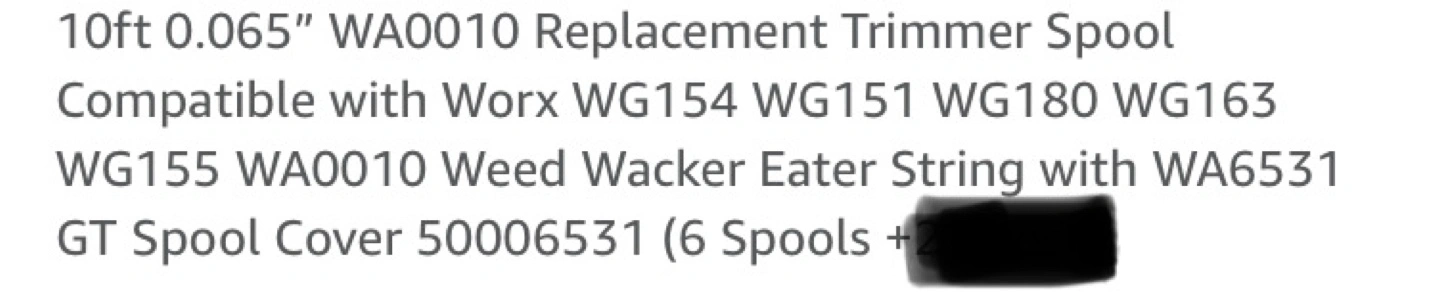 6 pack string trimmer spools. I use these in my YARDWORKS WEED EATER. $8 per pack of 6. Pick up in SELKIRK , MANITOBA .