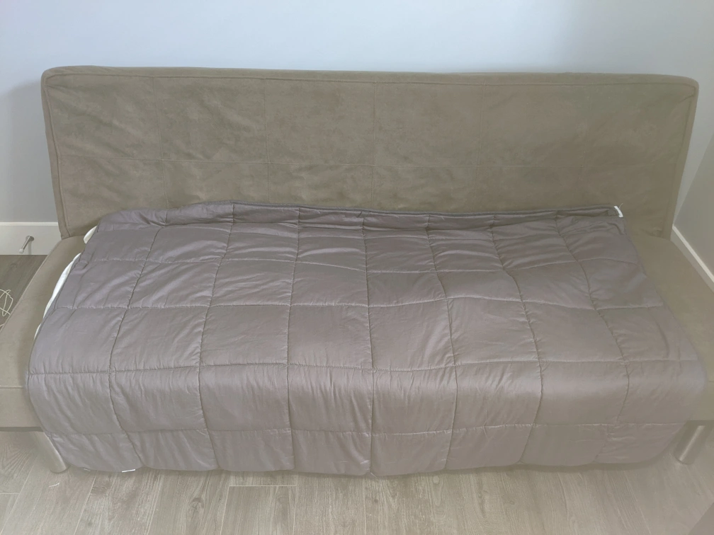 Breathable and pleasant on warm nights Very clean - like new Silky soft material, very comfortable Comes with cover+5$ Benefits of a weighted blanket: https://www.healthline.com/health/anxiety/do-weighted-blankets-work Size 60x40 inch Weight 10 lb Easy to clean Serious Inquiries only No delivery