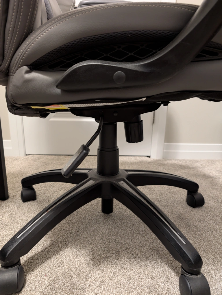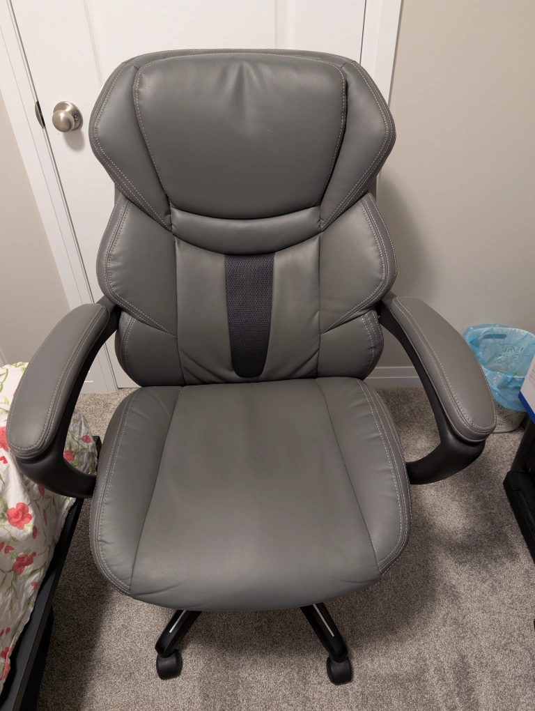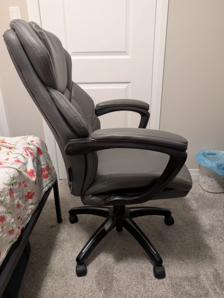 Selling a Wellness by Design office chair in great condition! This chair is super comfy and perfect for working from home or gaming. The grey colour is neutral and will fit in with any decor. It has adjustable height and armrests for maximum comfort