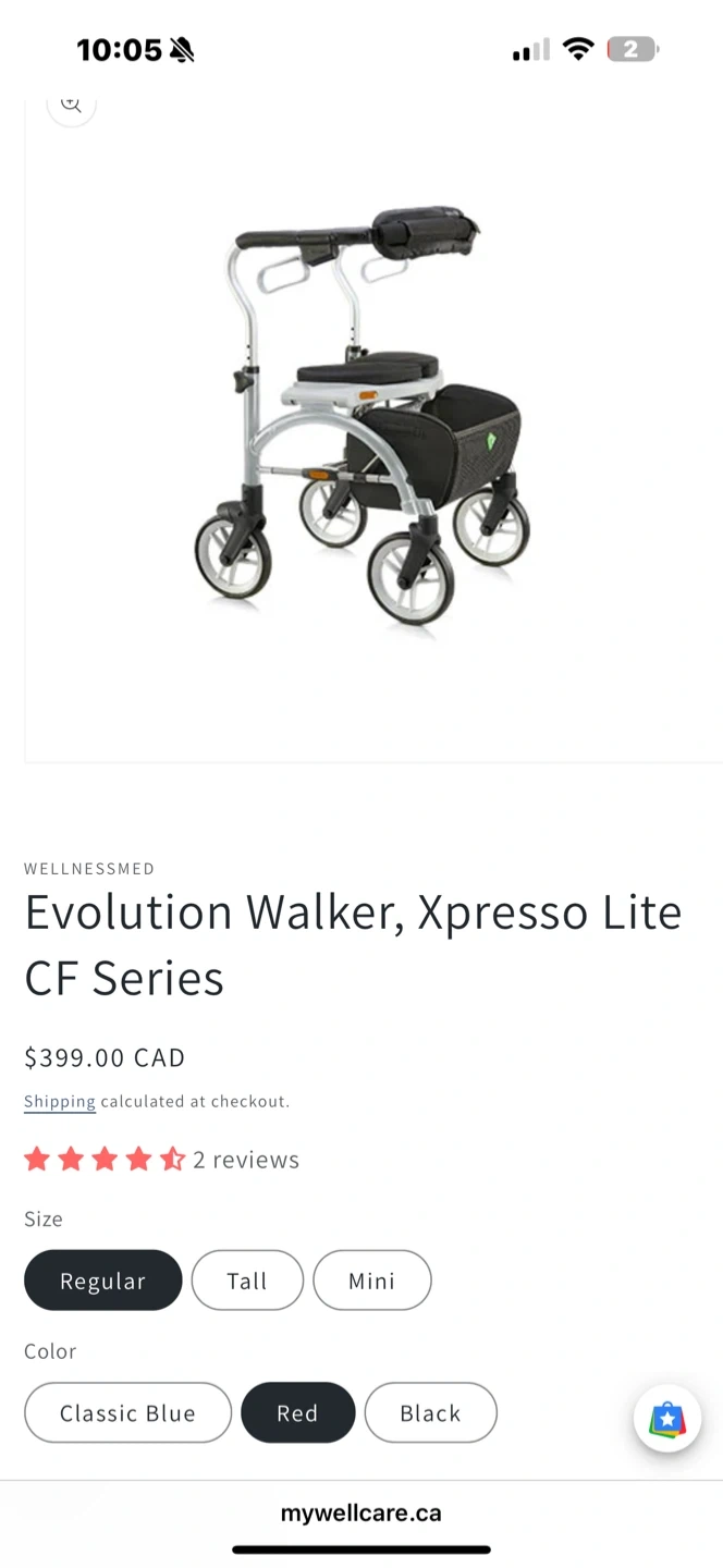 Selling a Wellnessmed Evolution Walker, Xpresso Lite CF Series. The original price was $399 CAD. It comes in the regular size and black colour. Perfect for getting around!