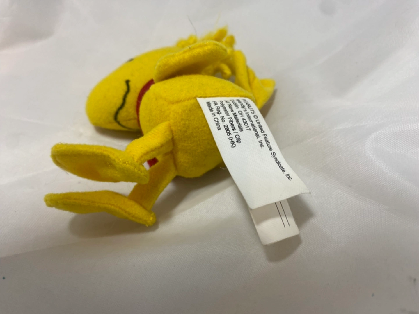 Delight your child with the Wendy's Kid's Meal Peanuts Bird Woodstock Snoopy Plush, a cuddly companion that brings the beloved character to life. Crafted with care, this 5-inch yellow plush toy is designed to appeal to a wide age range, suitable for kids from 3 years and upwards. It's an excellent addition to any fan's collection, embodying the charm and whimsy of the Peanuts Gang. This plush Woodstock is unbranded, ensuring that the focus remains on the delightful, nostalgic charm of the character. It's a classic collectible that harkens back to 2006, originating from China, and comes as a single unit without the inclusion of any custom or modified items. It's a must-have for any enthusiast of the Peanuts franchise or collector of fast-food memorabilia.