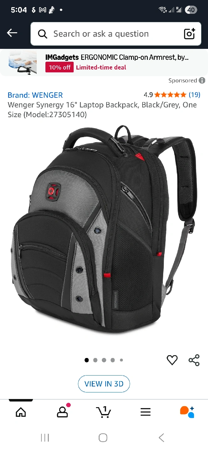 Wenger Synergy 16" Laptop Backpack – Black/Grey Durable and stylish backpack with triple-padded protection for laptops up to 16". Features multiple compartments for documents, chargers, and accessories, plus a padded Airflow back panel and shock-absorbing straps for all-day comfort. Perfect for work, school, or travel.