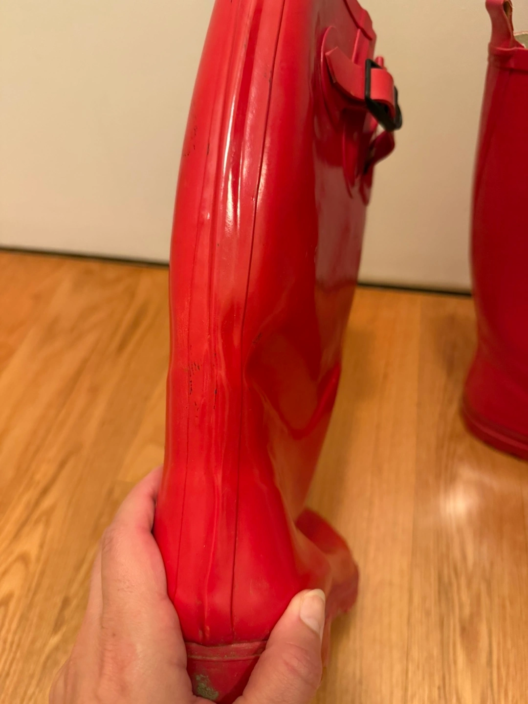 Selling a pair of Western Chief rain boots in red. They are in good condition (a few small marks and scuff but doesn’t affect its use) perfect for rainy days Lakeshore and parklawn Queen and ossington (some days) Open to trades