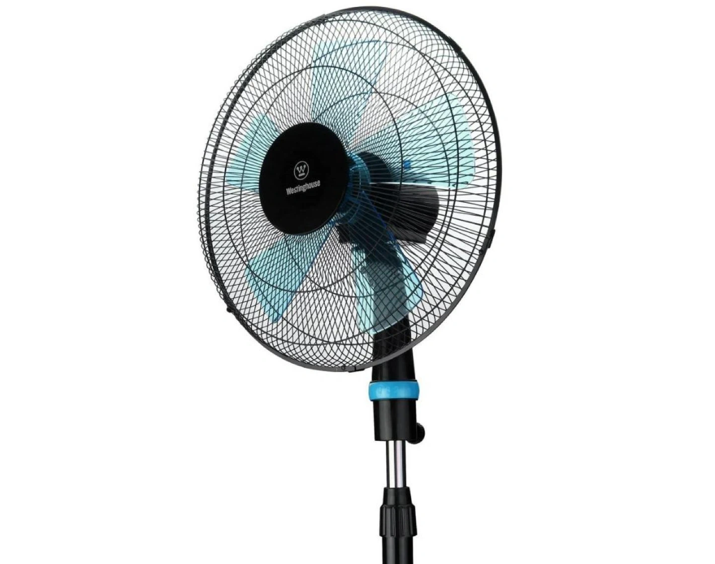 Selling a Westinghouse 16" pedestal fan. It features 3 speeds, left to right oscillation, adjustable height, and a 5 blade design. It's perfect for keeping cool during the summer months!