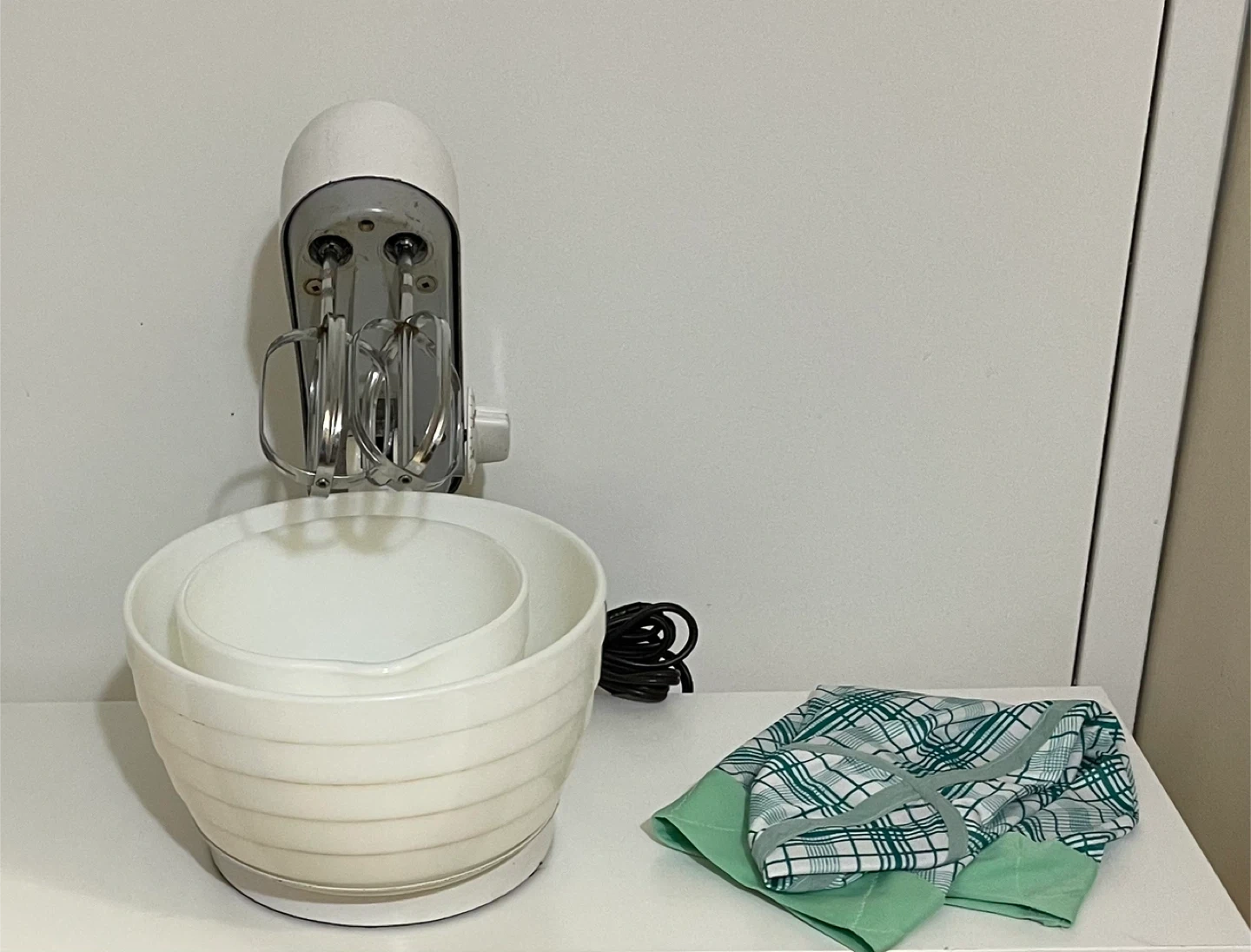 Westinghouse electric stand mixer. It comes with two white ceramic glass bowls, two stainless steel beaters, and a cloth cover. It's in good working condition. From smoke-free, pest-free, and pet-free home. Cash and pick up only. **Feel free to check my other listings** **Important Notes** 1) The Karrot platform operates on a "final sale" basis, meaning buyers are responsible for their purchases. No returns, and no refund once the purchase is finalized. 2) Buyers are encouraged to carefully check the item descriptions before contacting the seller to show their interest. 3) Buyers are advised to inspect any item before finalizing the purchase.